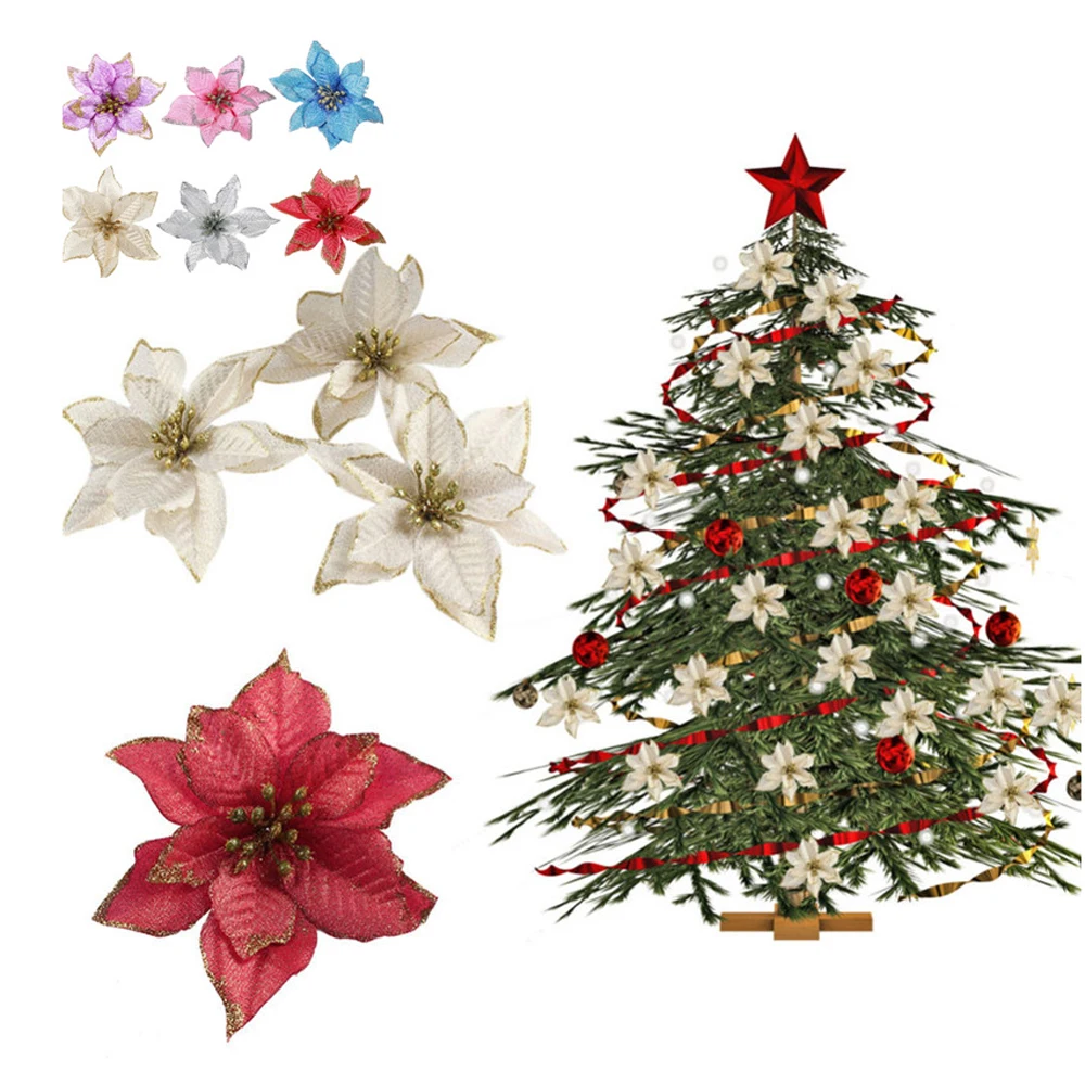 10 шт. блестящие пуансеттийские цветы, Рождественский Декор, венок,...