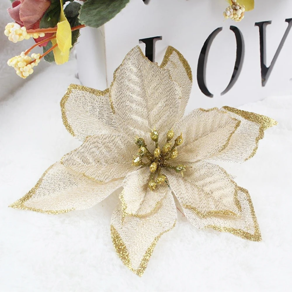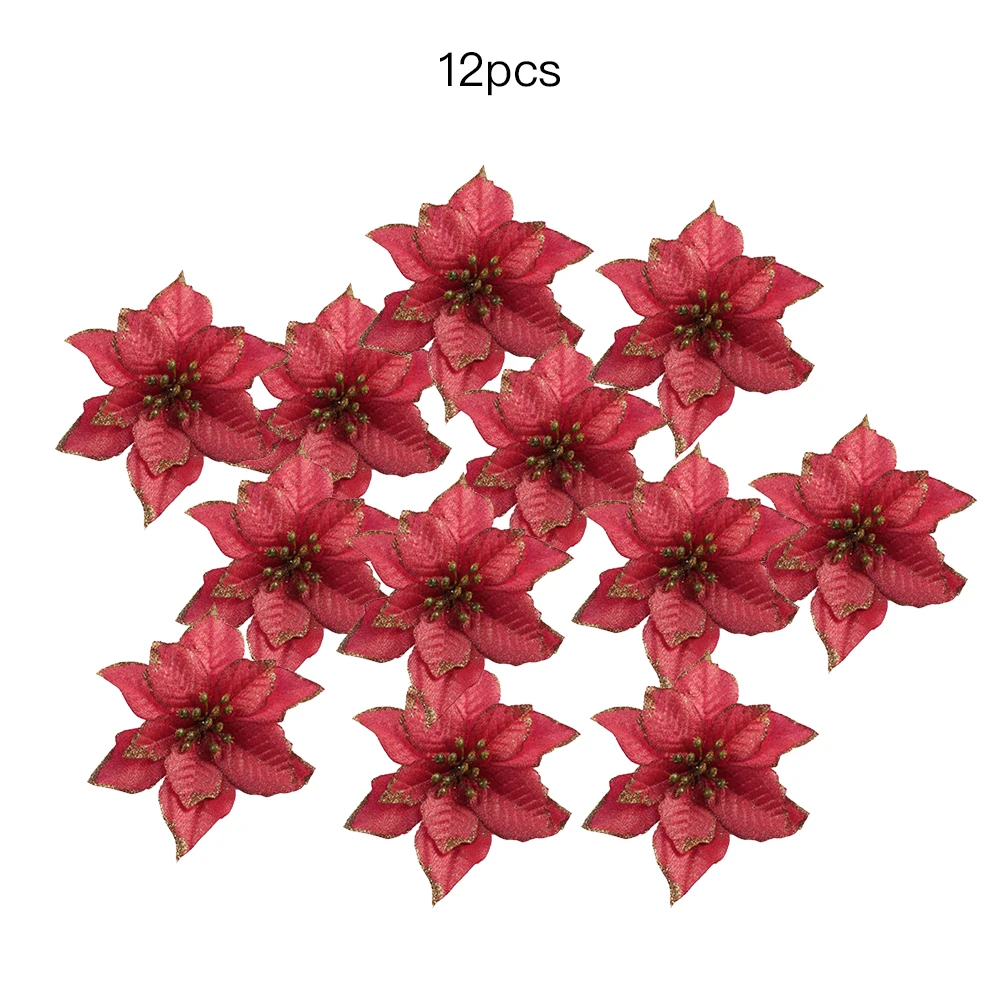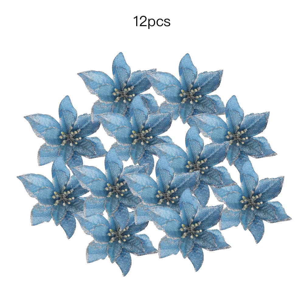 Блестящие цветы из искусственного шелка, для рождественской елки, 12 шт.