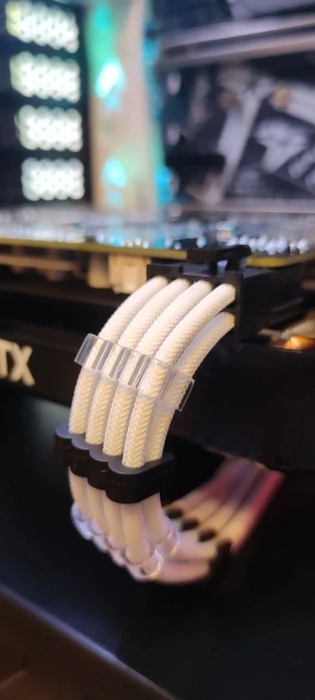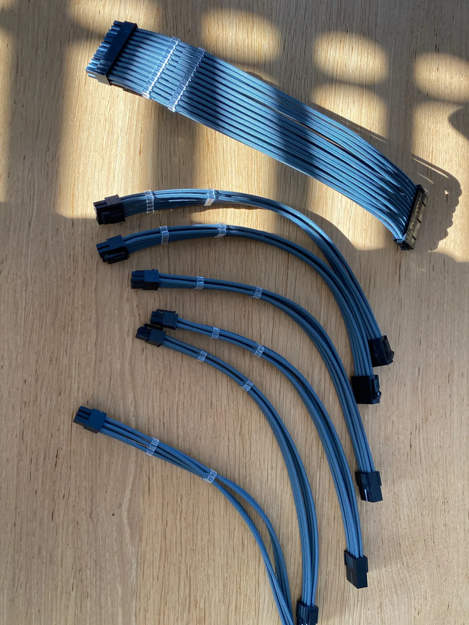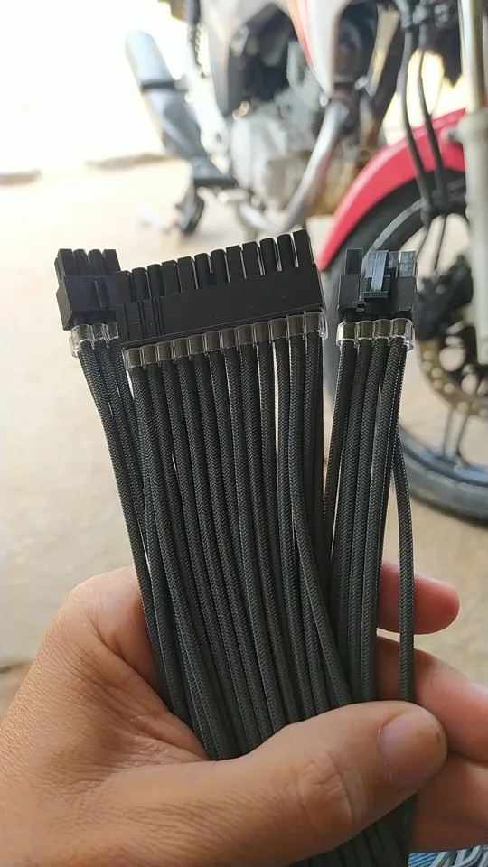 провода понравились, думал будут жёсткие прям, но норм гнутся. продавец общительный, отвечает быстро. цвета на заказ за это доплаты 2 доллара. заранее определитесь и обговорите с продавцом как будут подключаться провода, так одна часть длиннее для ровного изгиба. в моем случае подключение видеокарта снизу (защёлка сверху) на фото видно в чем нюанс. делайте не меньше 4 расчёсок на 30чм, так аккуратнее смотрится. на фишке "мама" защёлка от блока питания немного отходит - лучше всё зафиксировать.