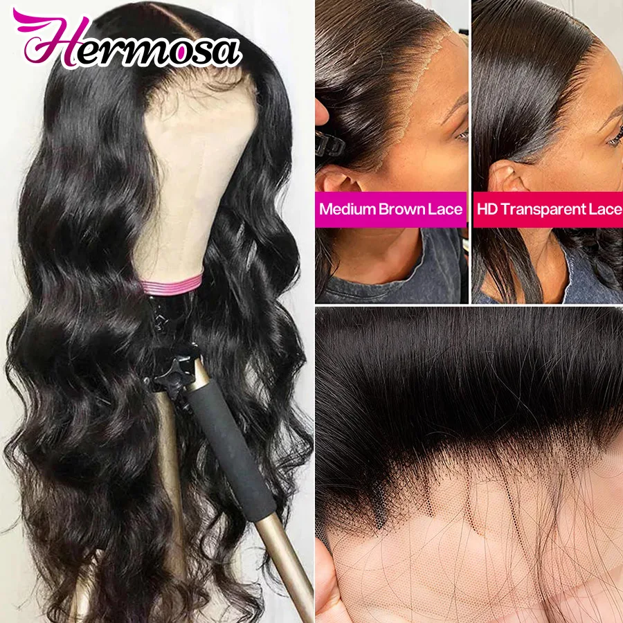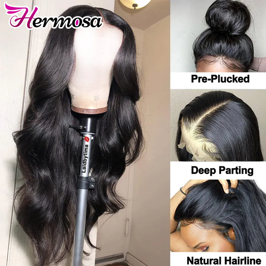 Парик Hermosa из человеческих волос на сетке спереди, бразильские волосы без повреждений 8-34, с кутикулой, 13x4, передние парики на сетке для чернокожих женщин