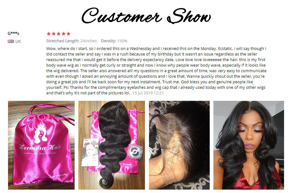 Я получил свои новые волосы и только тогда, когда было обещано, что они будут доставлены. Откройте свою упаковку, и мне это нравится! Спасибо.