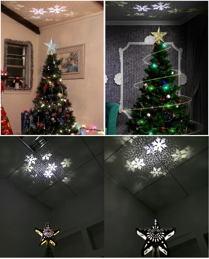 Топпер для рождественской елки, светодиодный светильник-проектор в ...