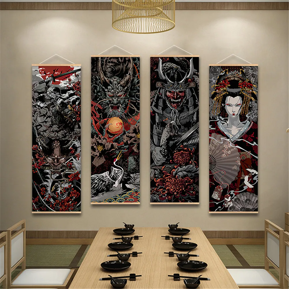 Настенное искусство, постер с японским Самураем, сакураном, укиео, Свиток для гостиной, эстетические картины в свитке, винтажный постер с аниме