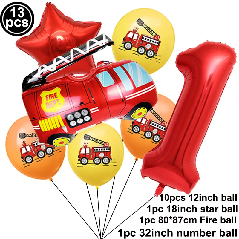 13 шт.компл., 2-й, 3-й день рождения, пожарная машина, латексные воздушные шары, 32 дюйма, Красный номер, баллон, детский душ, пожарный, украшение для дня рождения