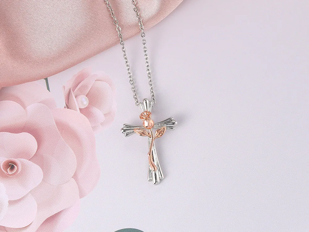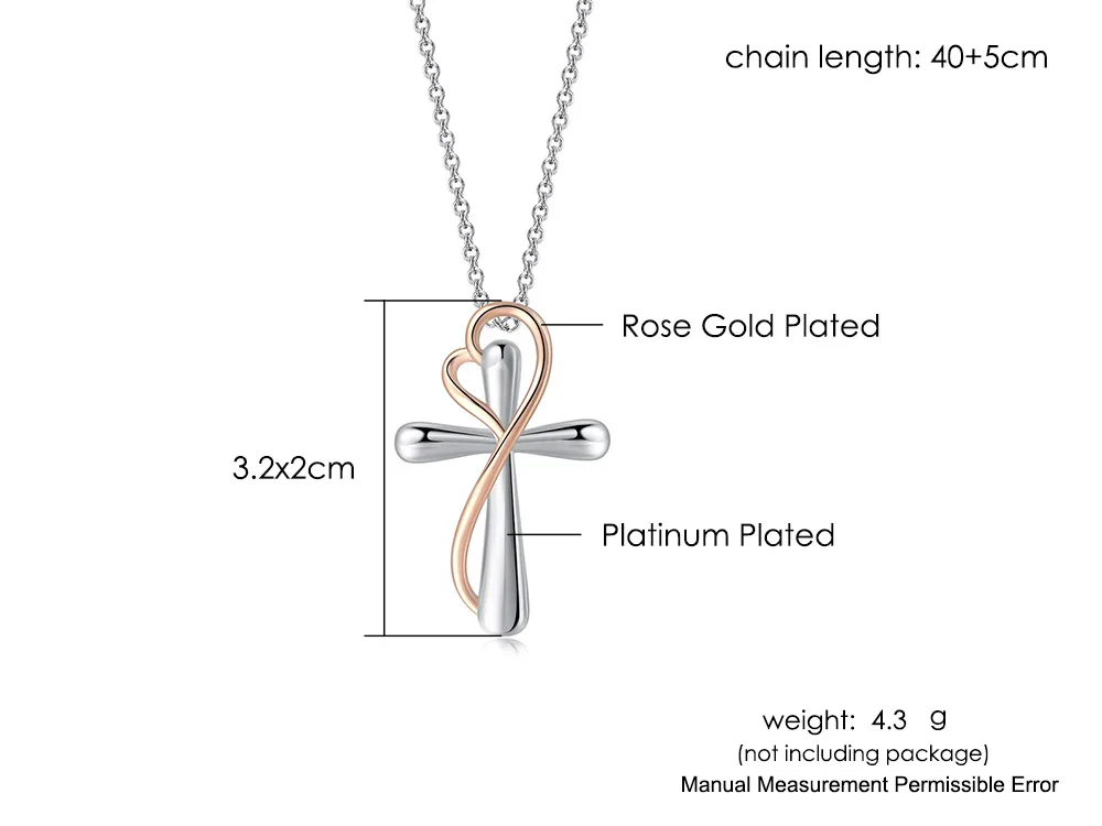 Женское ожерелье кулон крест с сердцем, эстетическое двухцветное женское колье, ожерелье с цепочкой-крестом, рождественский подарок, бижутерия N231