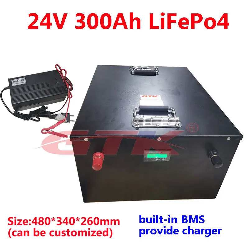 Заводская цена RV Camper Go Cart LiFepo4 24V 300Ah аккумулятор Встроенный BMS может подключаться параллельно для солнечной панели + зарядное устройство 20A