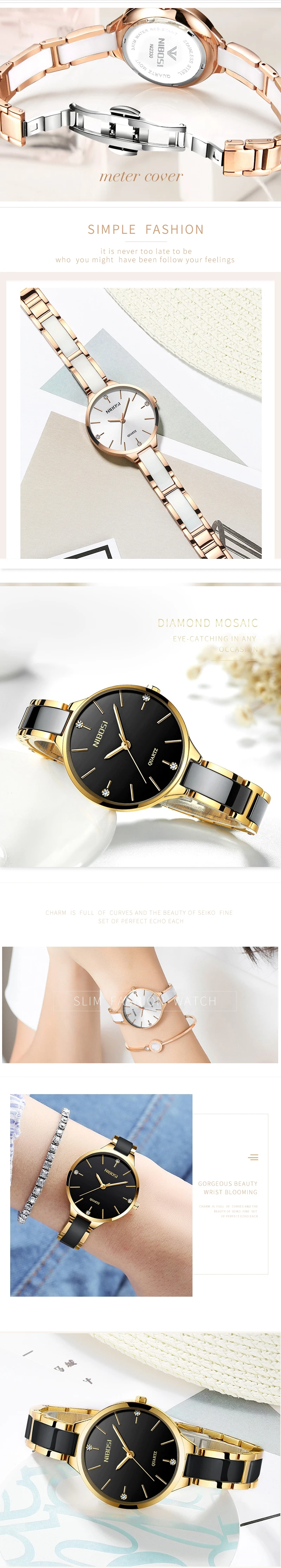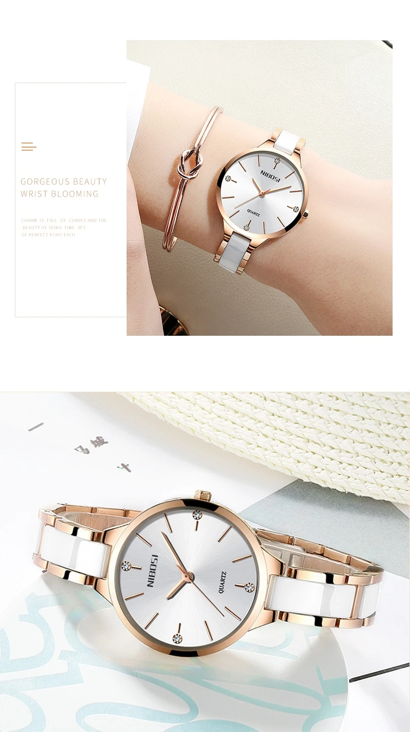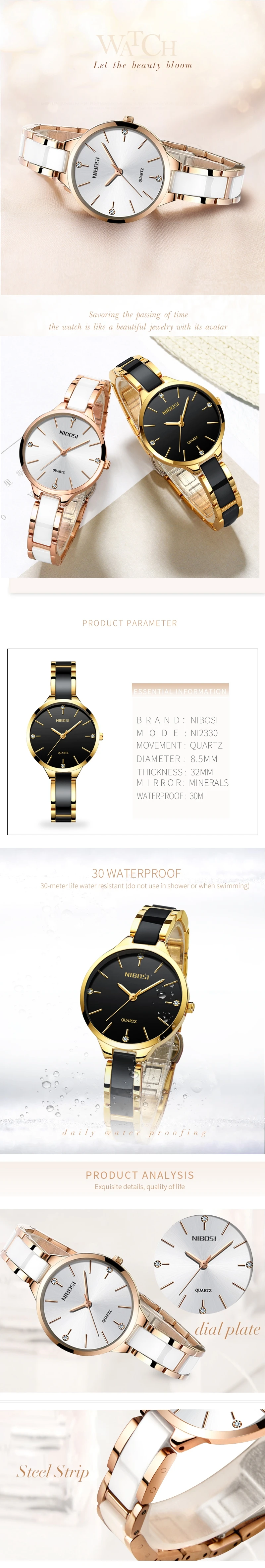 Женские часы NIBOSI 2022, модные женские керамические наручные часы, женские наручные часы из нержавеющей стали, водонепроницаемые женские часы с датой