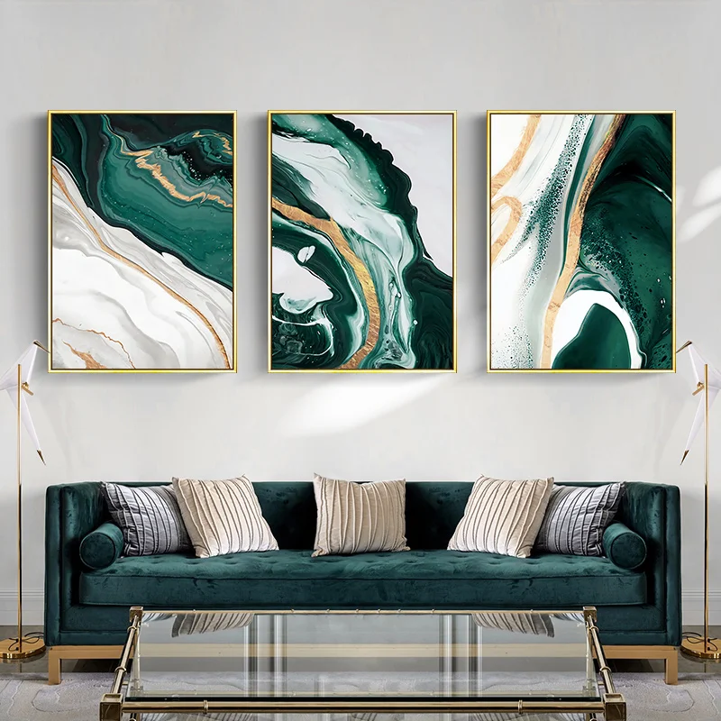 Скандинавский абстрактный современный декор, картина, зеленая стена...