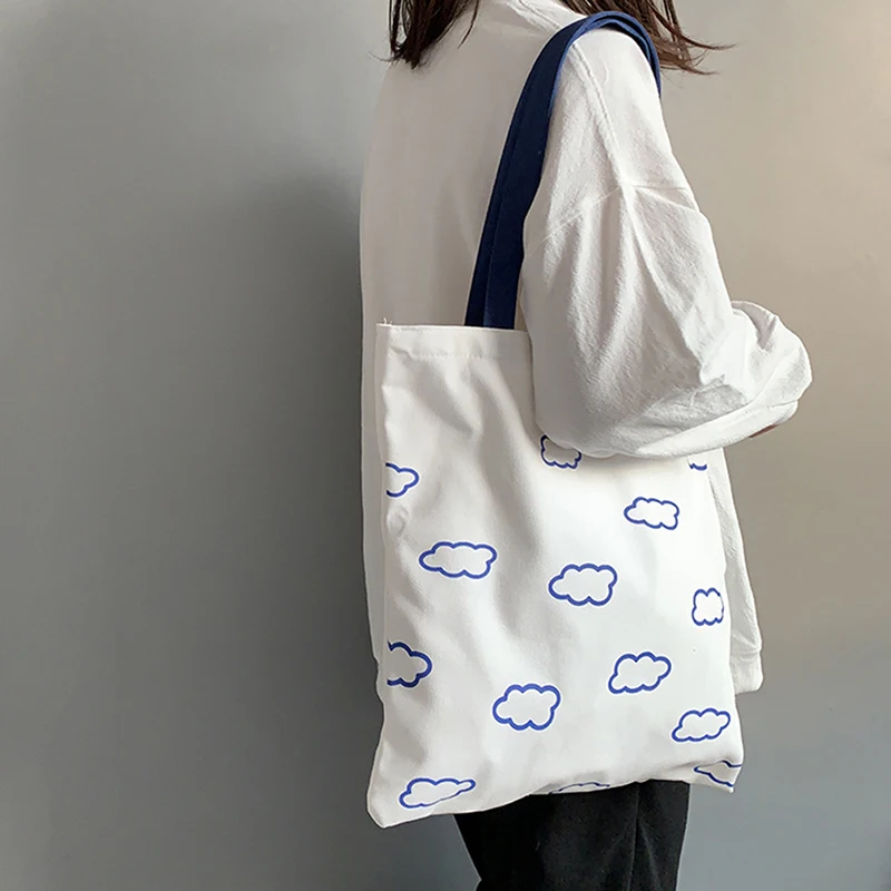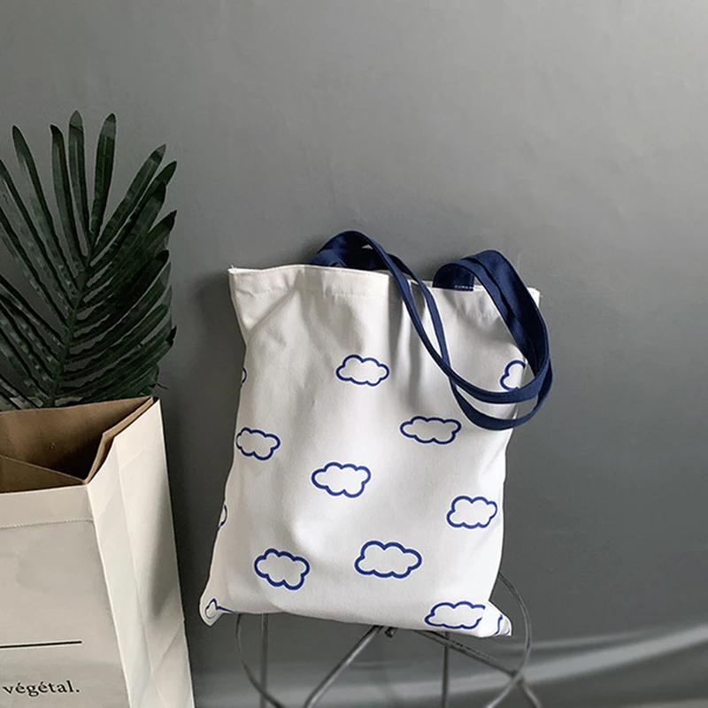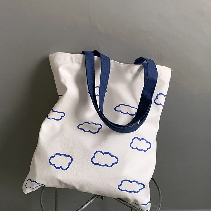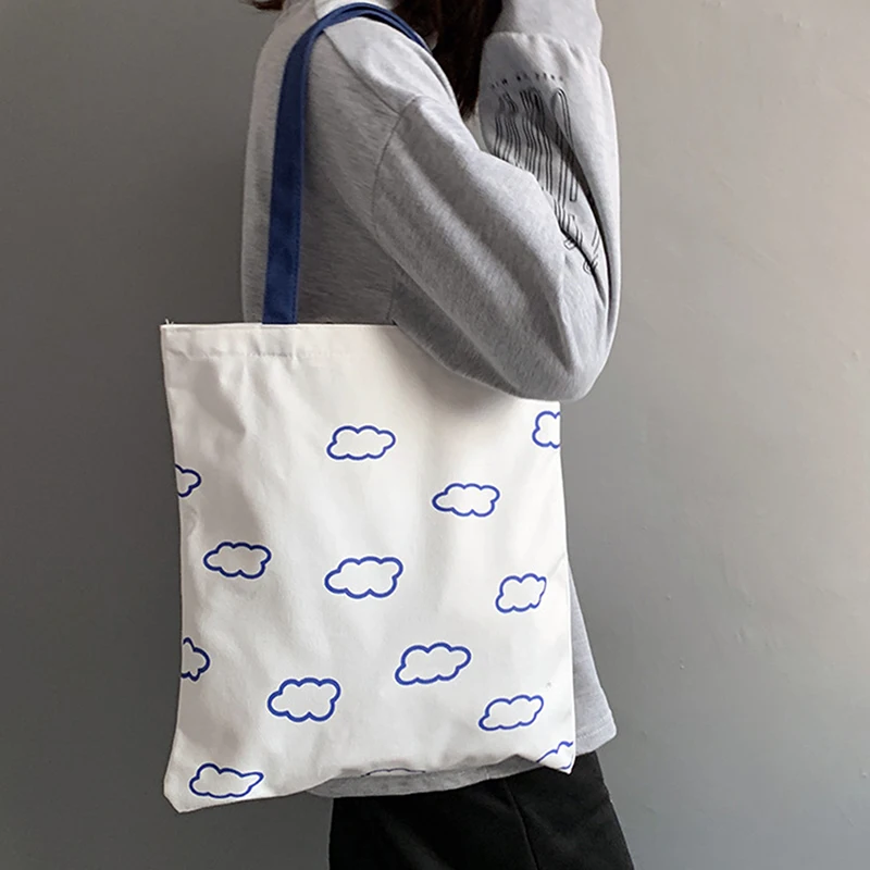 Холщовые сумки-тоуты для женщин с принтом облаков, повседневные тканевые сумки для покупок на ремне для девушек, дамские сумочки для покупок на молнии