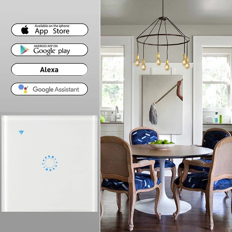 Интеллигентая (ый) Wi-Fi Сенсорный настенный выключатель: 1 / 2 / 3The Gang сенсорный выключатель поддерживает максимум мощность 2200 Вт, которая может работать с большинства ламп и других электрических приборов. Он может управлять 3 устройствами одновременно. Размер: 3,4 (Д) * 3,4 (Ш) * 1,4 (в) дюймов, напряжение переменного тока 90-250 В.