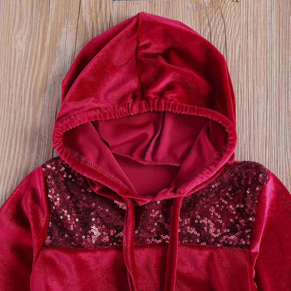 Одежда для маленьких девочек; Бархатный костюм, свитер с капюшоном + брюки для девочек, блестки, шить украшения ребристые закрытия Весенняя осенняя одежда От 1 до 6 лет