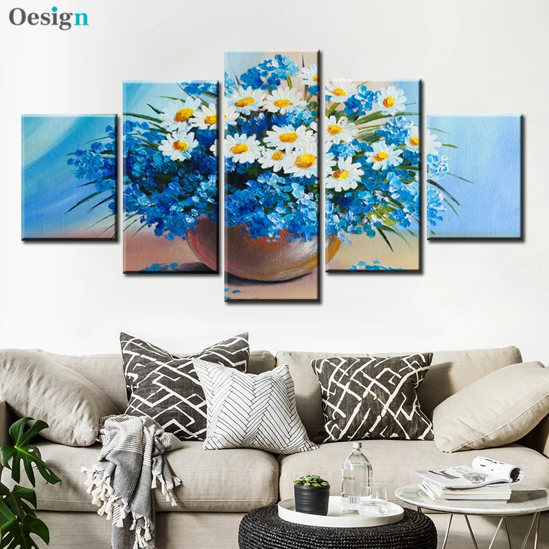 5 панелей абстрактная Цветочная Картина на холсте и принты современный минималистичный альпийский плакат с орхидеей Настенная картина украшение для дома