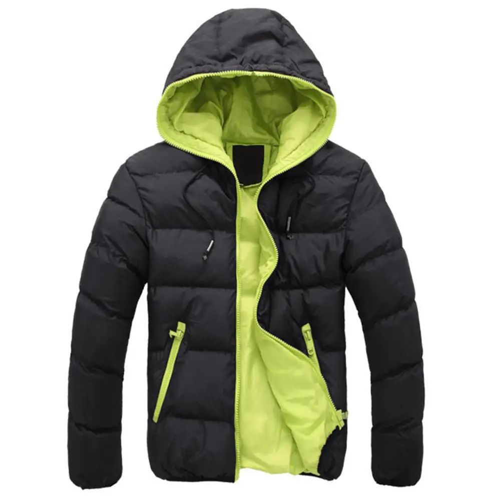 Осенне-зимние мужские куртки, пальто на молнии с цветными блоками, толстое теплое хлопковое пальто, повседневный пуховик с капюшоном, верхняя одежда высокого качества