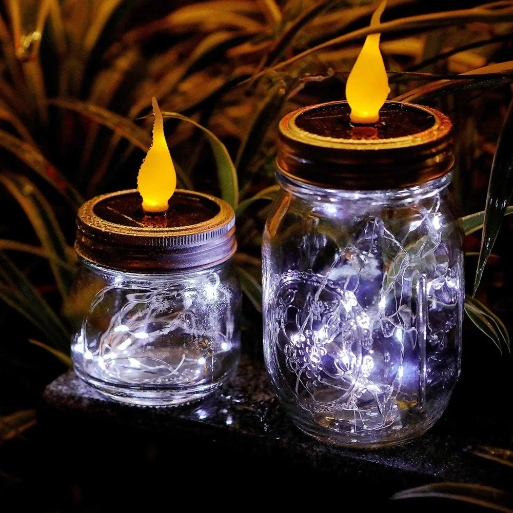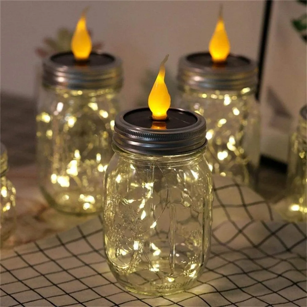 Солнечная банка Mason, 20 светодиодов, теплое белое стекло, сказочное подвесное освещение, наружные струнные крышки для обычных банок для рта, лампа для патио