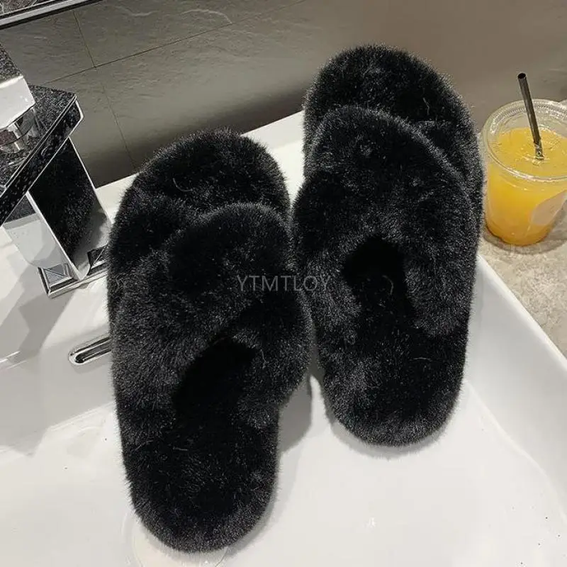 Шлепанцы женские с мехом енота, сандалии на плоской подошве, шлепанцы из натурального Лисьего меха, тапочки для улицы, летняя обувь