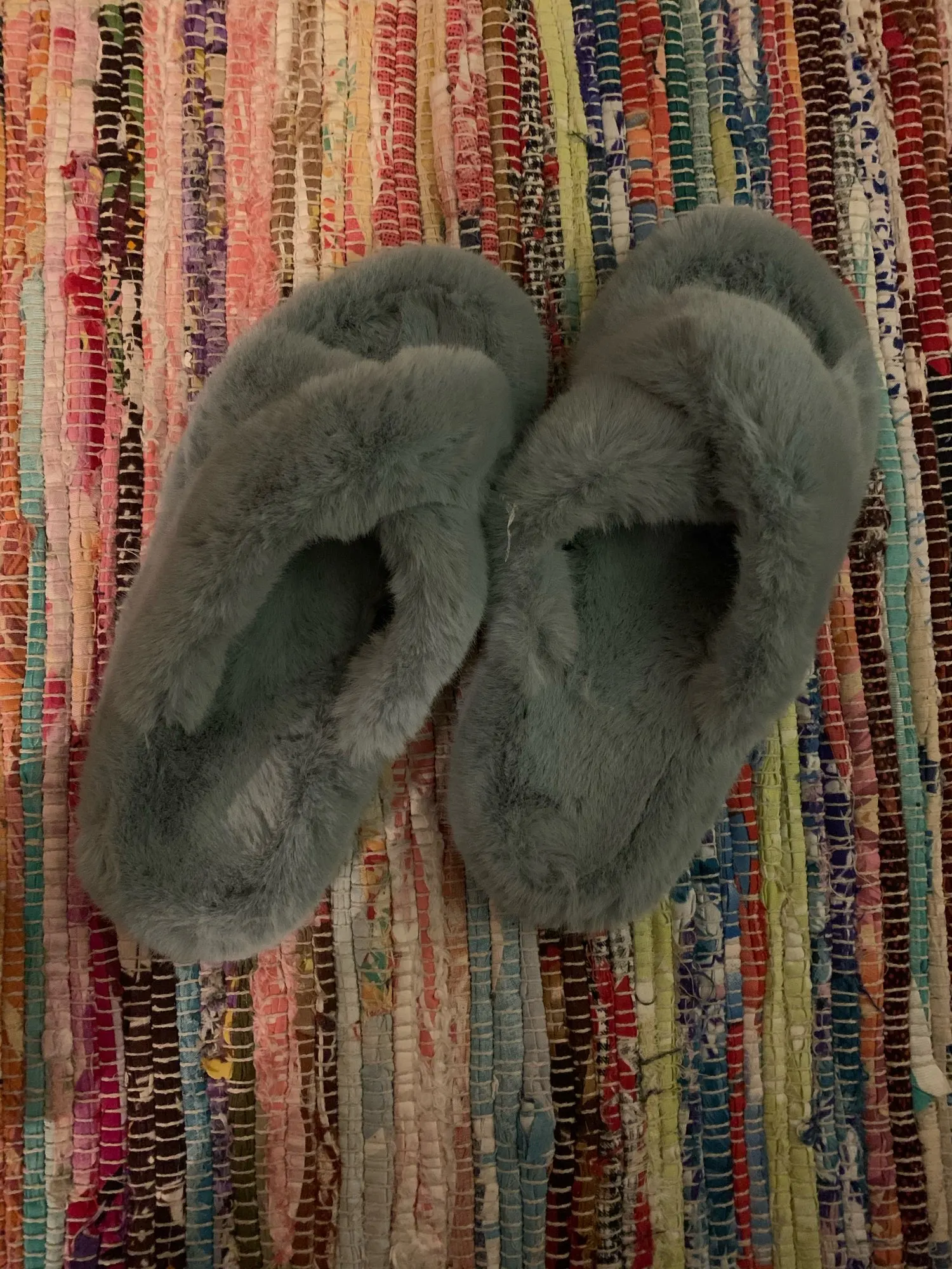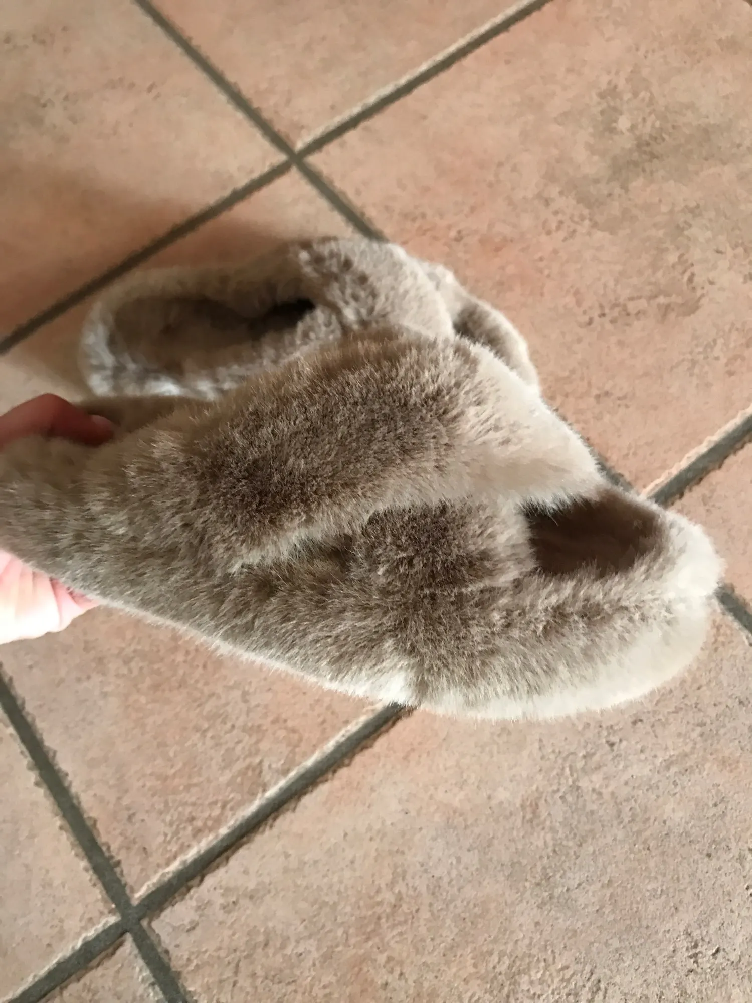 Тапки пришли быстро, но другого цвета. Вместо бежевого, серо-синие