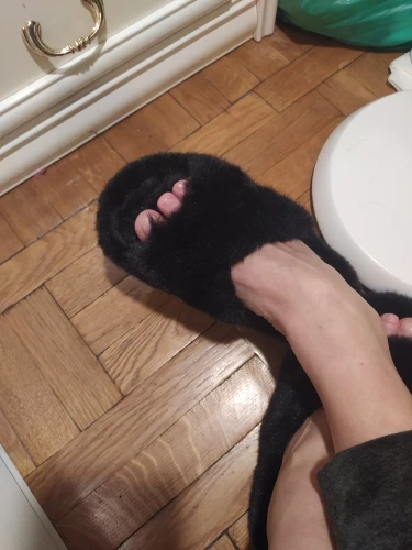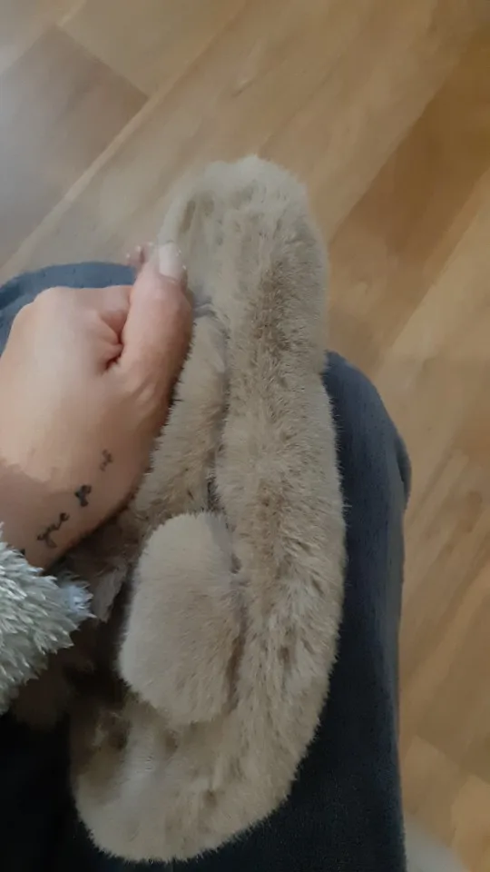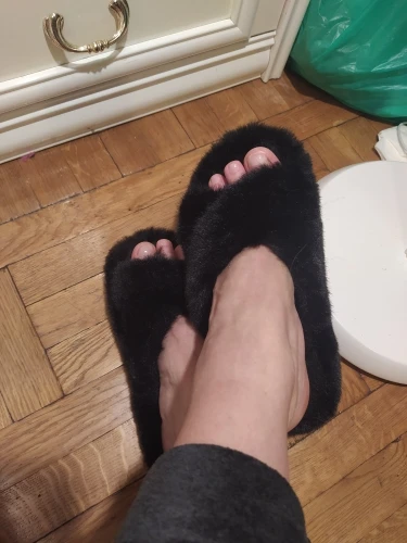 Внешне тапки просто изумительные. Мех как настоящий кролик, да и по ощущениям очень хорош и выглядит весьма дорого. Запах есть, думаю, выветрится. На 37 размер (240 мм) взяла 39. Вышло немного с запасом, но в принципе, не напрягает. Смутил только вес, они какие-то очень тяжёлые для дома... даже ногу тяжко поднять, хожу шаркаю по квартире весь вечер. Думаю, что использовать в качестве гостевых или при гостях надевать, не на постоянную носку дома