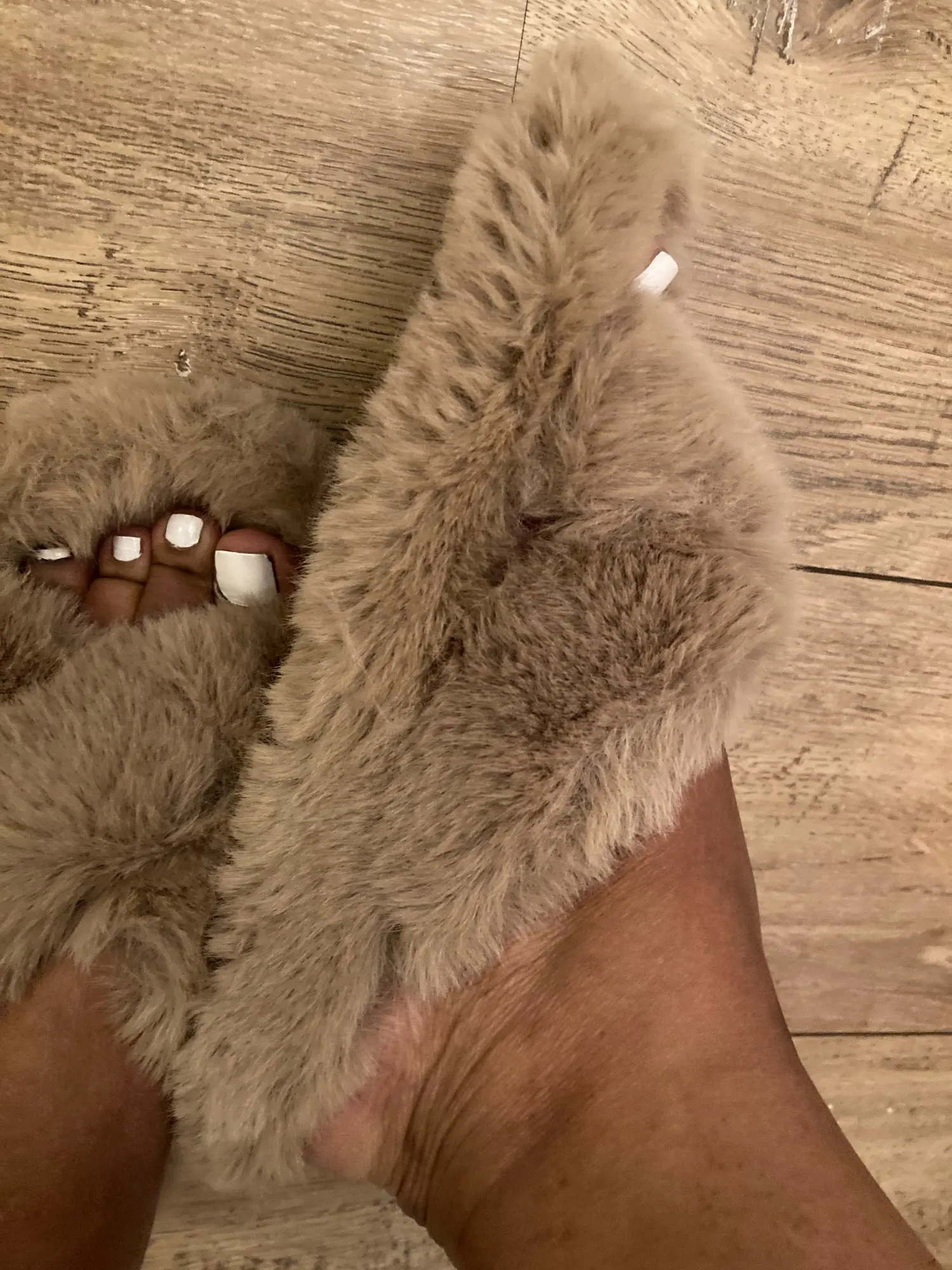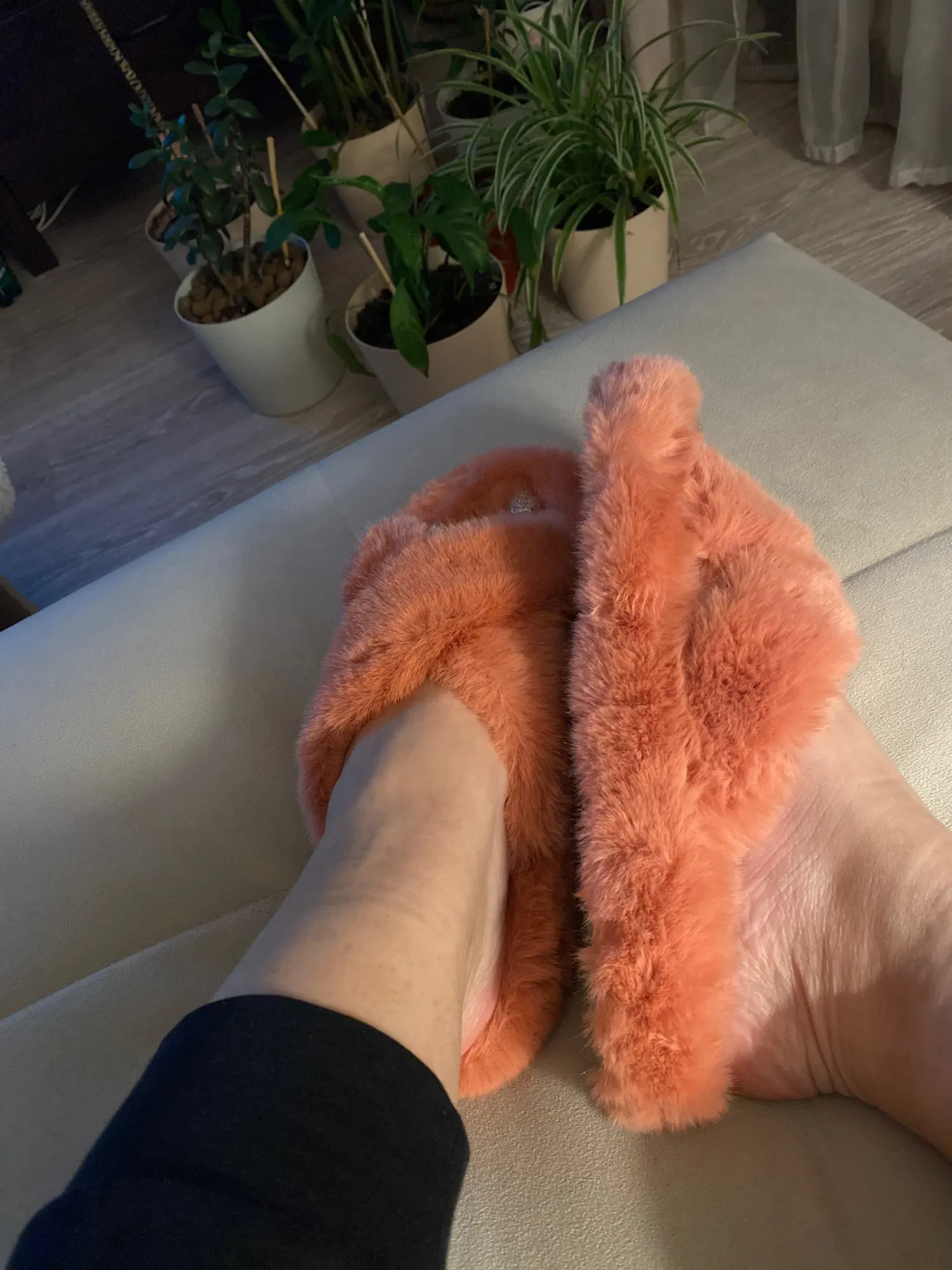 Тапочки симпатичные, мягкий и шелковистый искусственный мех. Размер взяла 37 на свой 36.5, подошёл с запасом. Мех немного примятый был, я отпарила и вычесала лишее, выглядят точно как на фото продавца. По весу нормальные, не супер-лёгкие, но и не тяжёлые. Нога скользит изнутри по меху, но надеюсь, что это временно. Подошвы не скользкие.