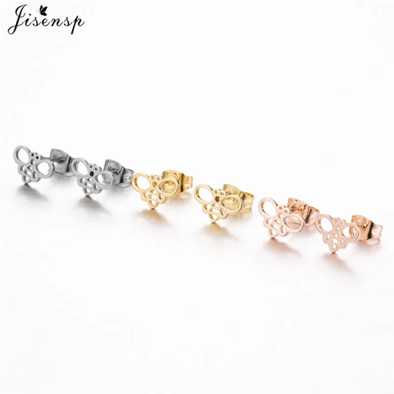 Женские серьги-гвоздики Jisensp, из нержавеющей стали, с ажурными цветами и бабочками, ювелирные изделия в Корейском стиле
