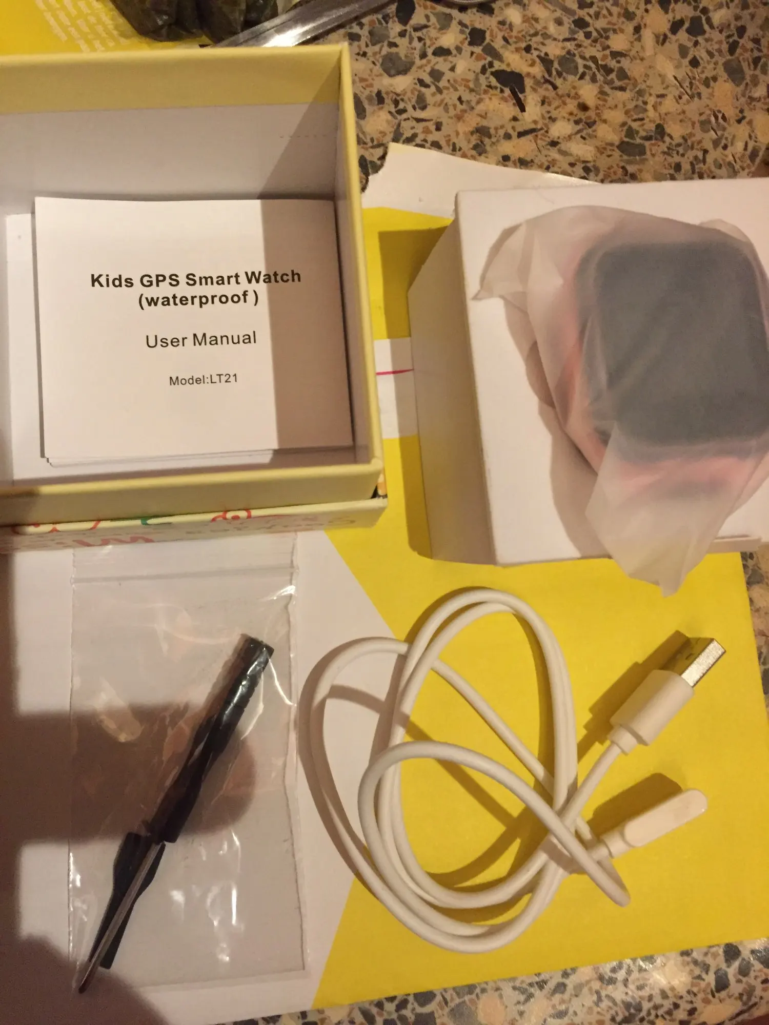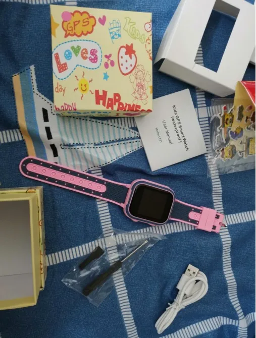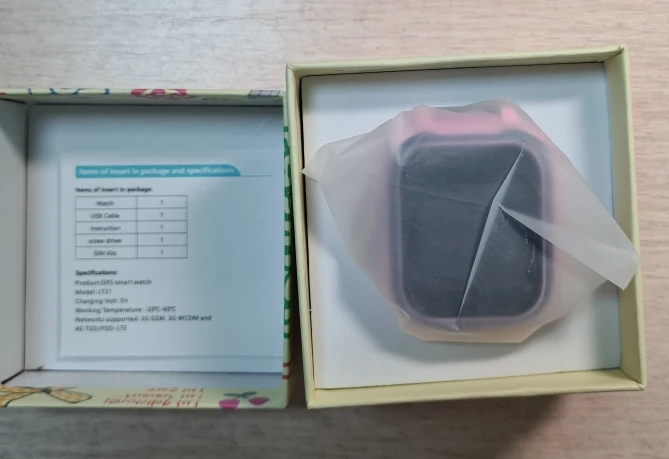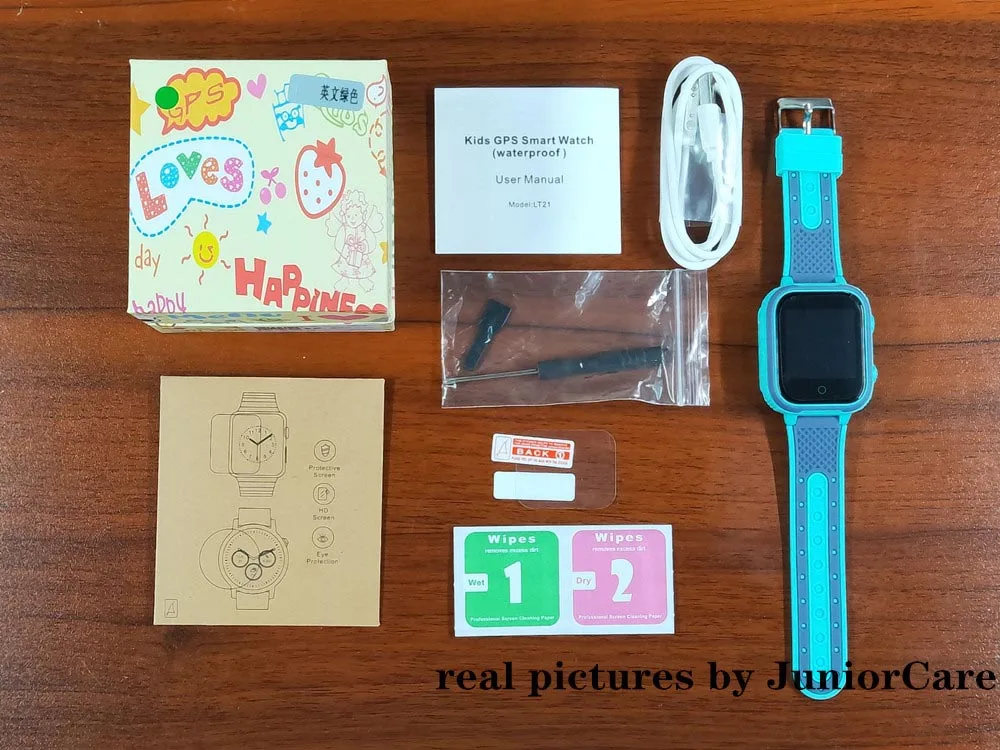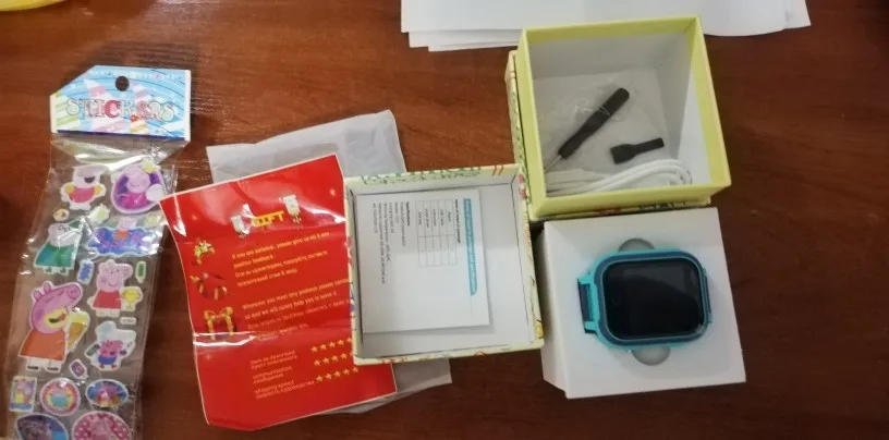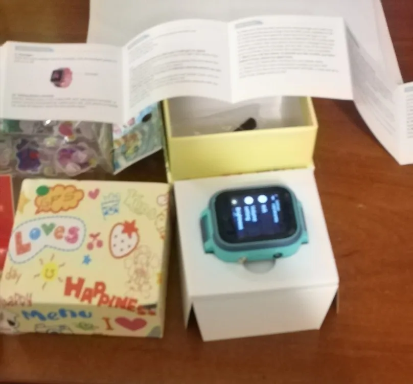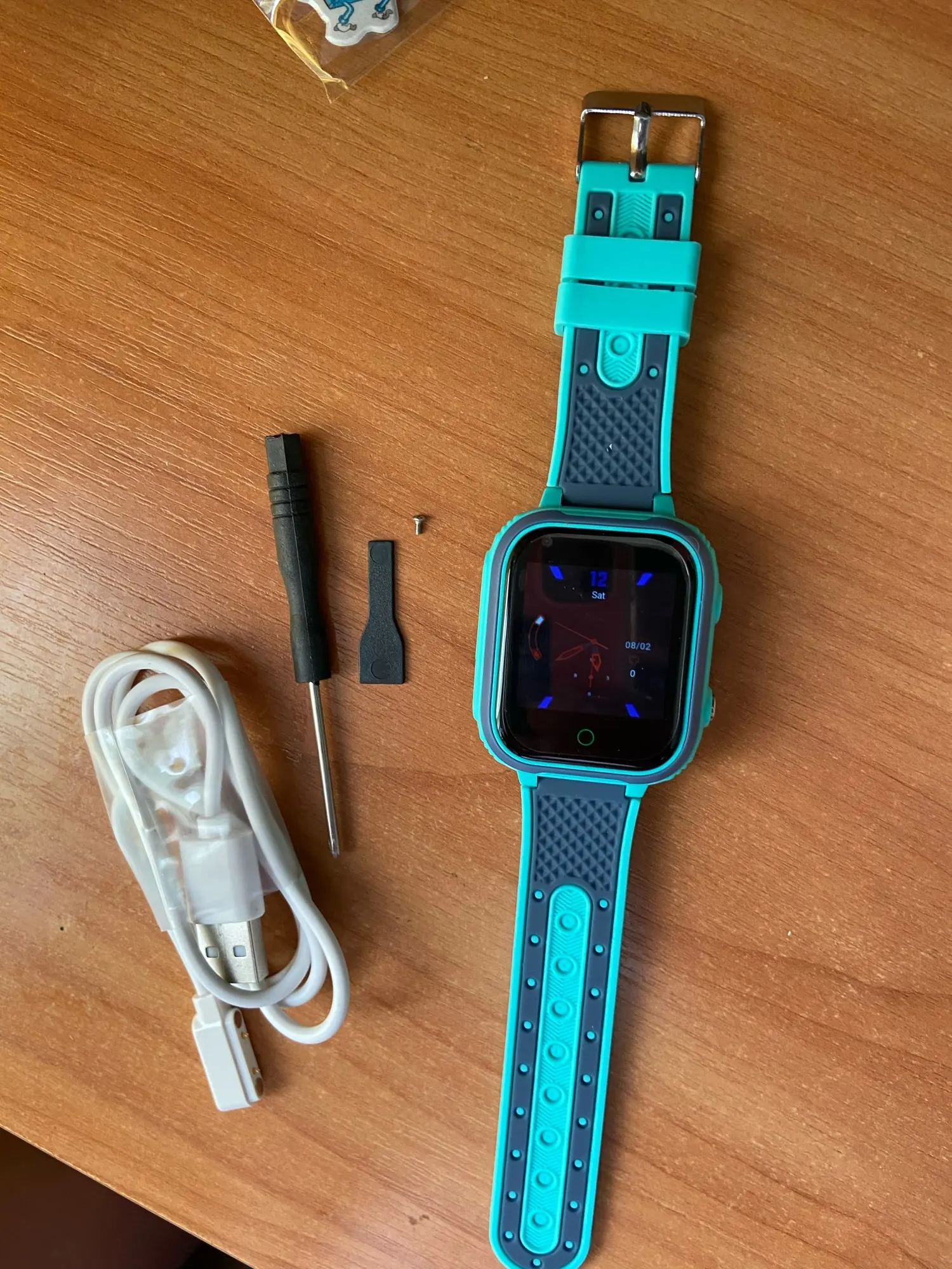 Отличный продукт. Осталось только сим карту купить и вставить. Пришло в крутой подарочной упаковке, заряжены даже на 40 процентов, приятная красивая упаковка коробка, не мятая. В комплекте инструменты для установки и извлечения СИМ карты, и запасной болтик , браслет очень мягкий, цвет бирюзовый, как и заказывал. Завтра подарю дочке она их очень хотела на свои 7 лет. Инструкция на английском, но всё и так понятно.. Даже есть стробоскоп при входящем звонке индикатор моргает. Кароче продовца советую, дошли быстро примерно две недели. В подарок положили стикеры СВИНКА ПЕППА. классно, ребенку понравиться. Своих денег стоит... 5 ПЯТЬ ЗВЁЗД ......