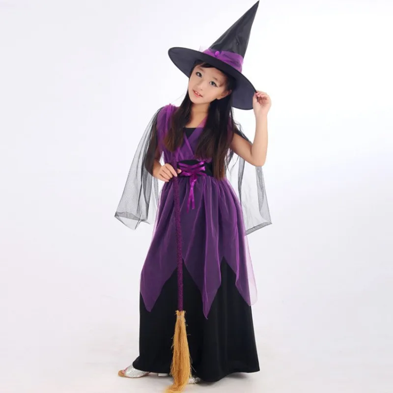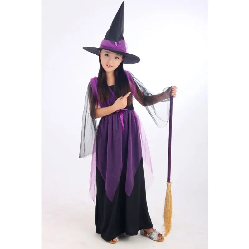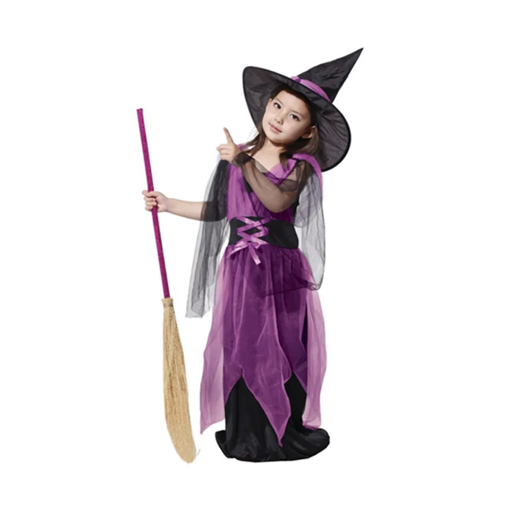 Детский карнавальный костюм фиолетового ведьмы, костюм эльфа для девочек, косплей, без метлы, платье на день рождения, карнавал
