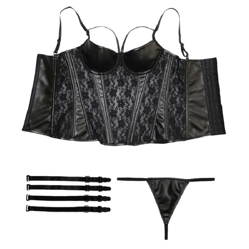 Новый сексуальный корсет, Бюстье Кожа кружевное женское нижнее белье, нижнее белье, которое поможет скрыть недостатки вашей фигуры! Дышащее белье утягивающий корсет Корректирующее белье Топ с увеличением объема (пуш-ап Слинг Корсет черного цвета