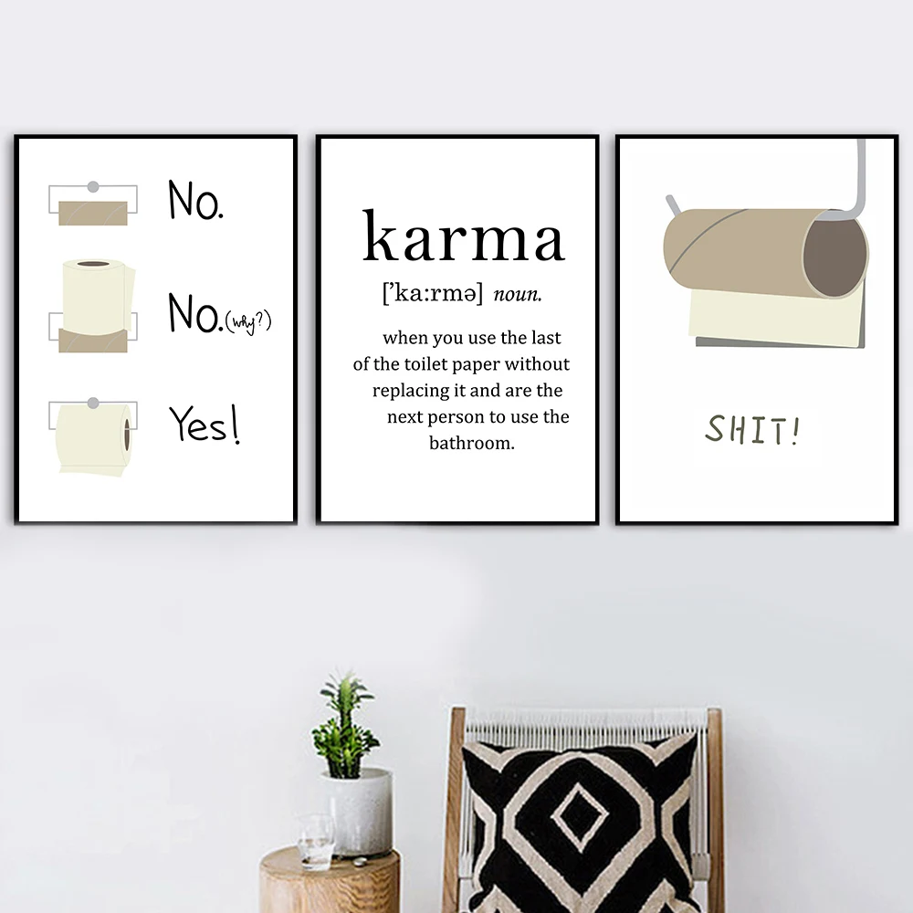 Настенные абстрактные картины funnyтуалет Карма для декора ванной комнаты, постеры и принты, минималистичный плакат для мытья комнаты, печать