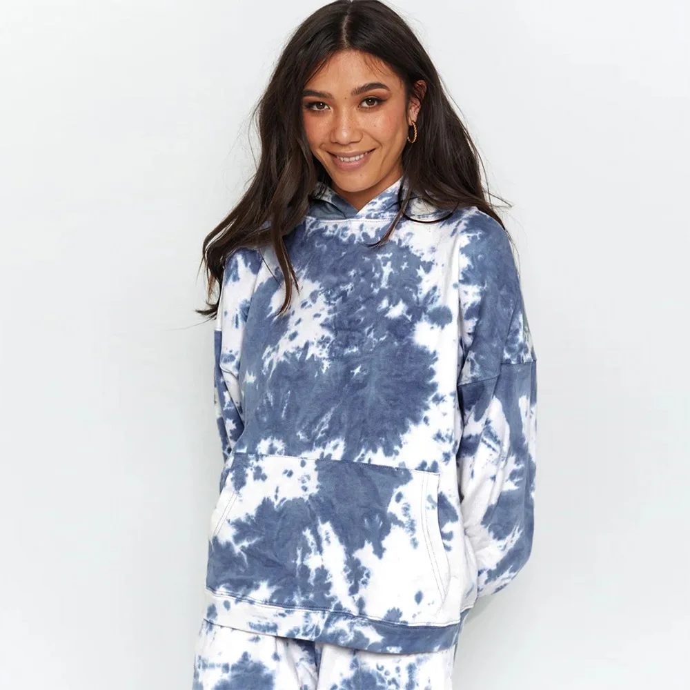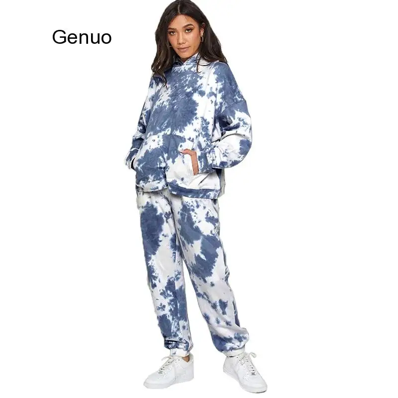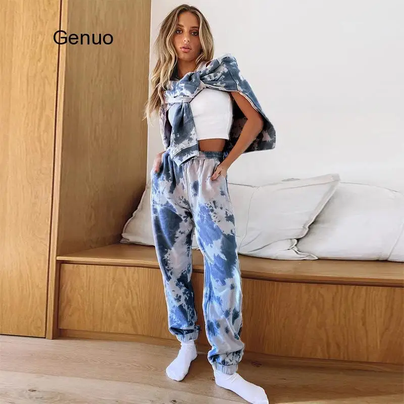 Женская одежда для отдыха с принтом Tie-Dye, индивидуальная толстовка, спортивный костюм, облегающие брюки, спортивный костюм, осень 2020, Модный комплект одежды для бега