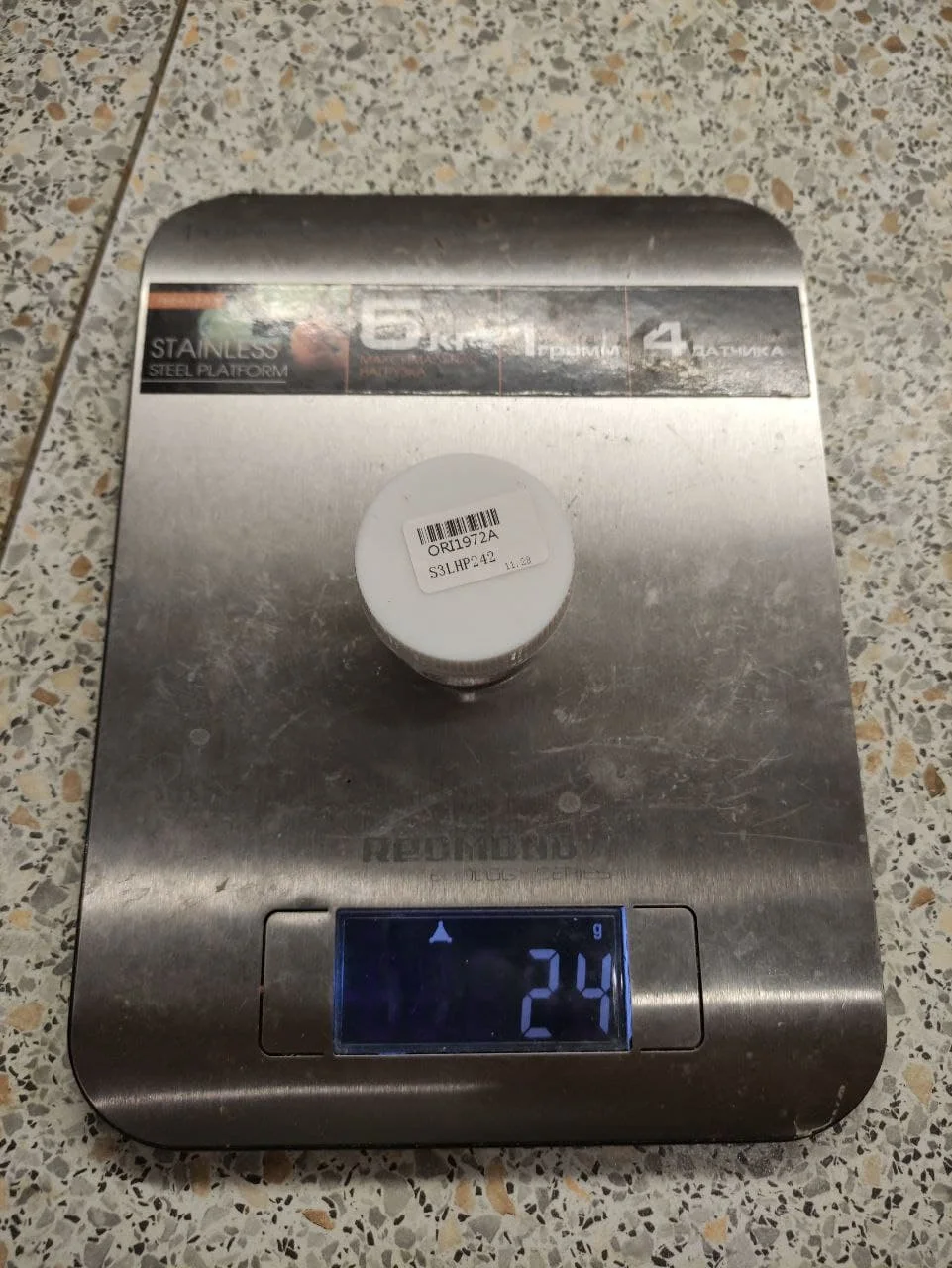 Шло долго, вес 21.89 грамм без крышки. Не доложили(