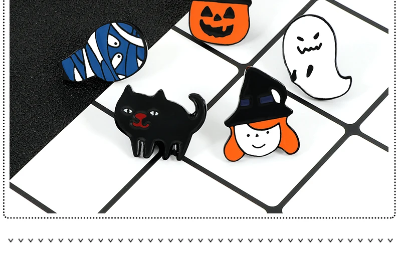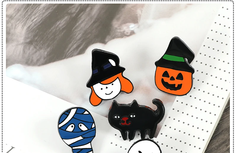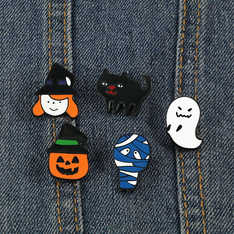 Значок эмалированный в виде Джека-фонаря, ведьмы, призрака, мумии, кота, тыквы, из сплава под заказ, броши для Хэллоуина, для праздника, ювелирное украшение в виде лацкана