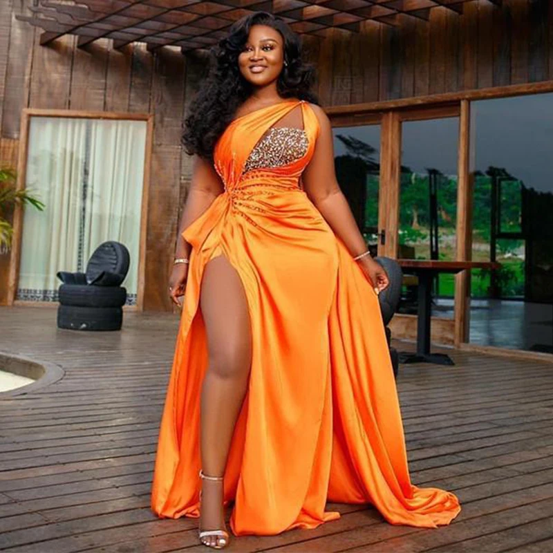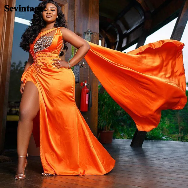 Sevintage Русалка мягкие атласные вечерние платья с высоким разрезом расшитые блестками плиссированные Выпускные платья на одно плечо размера плюс платье для особых случаев