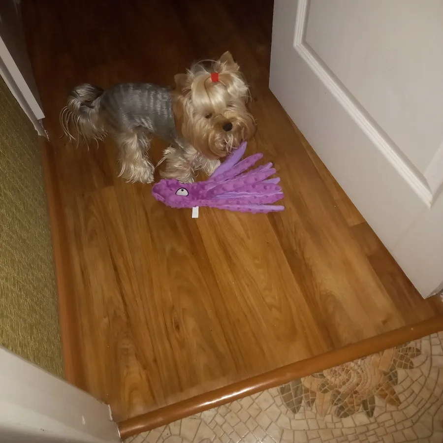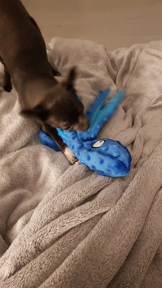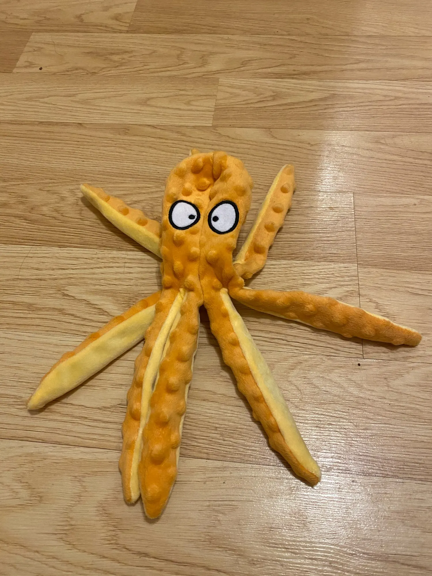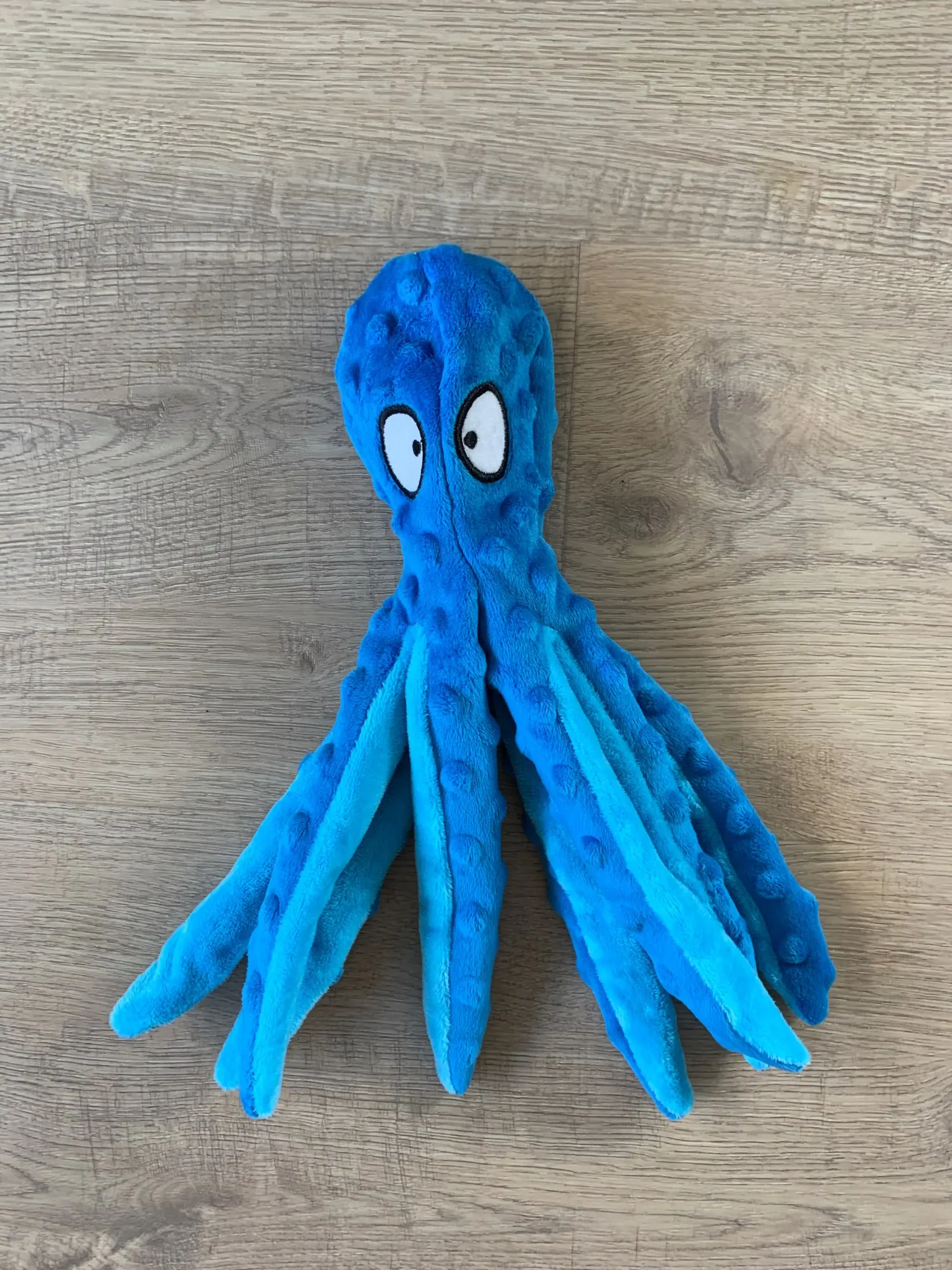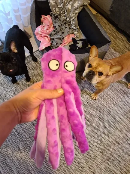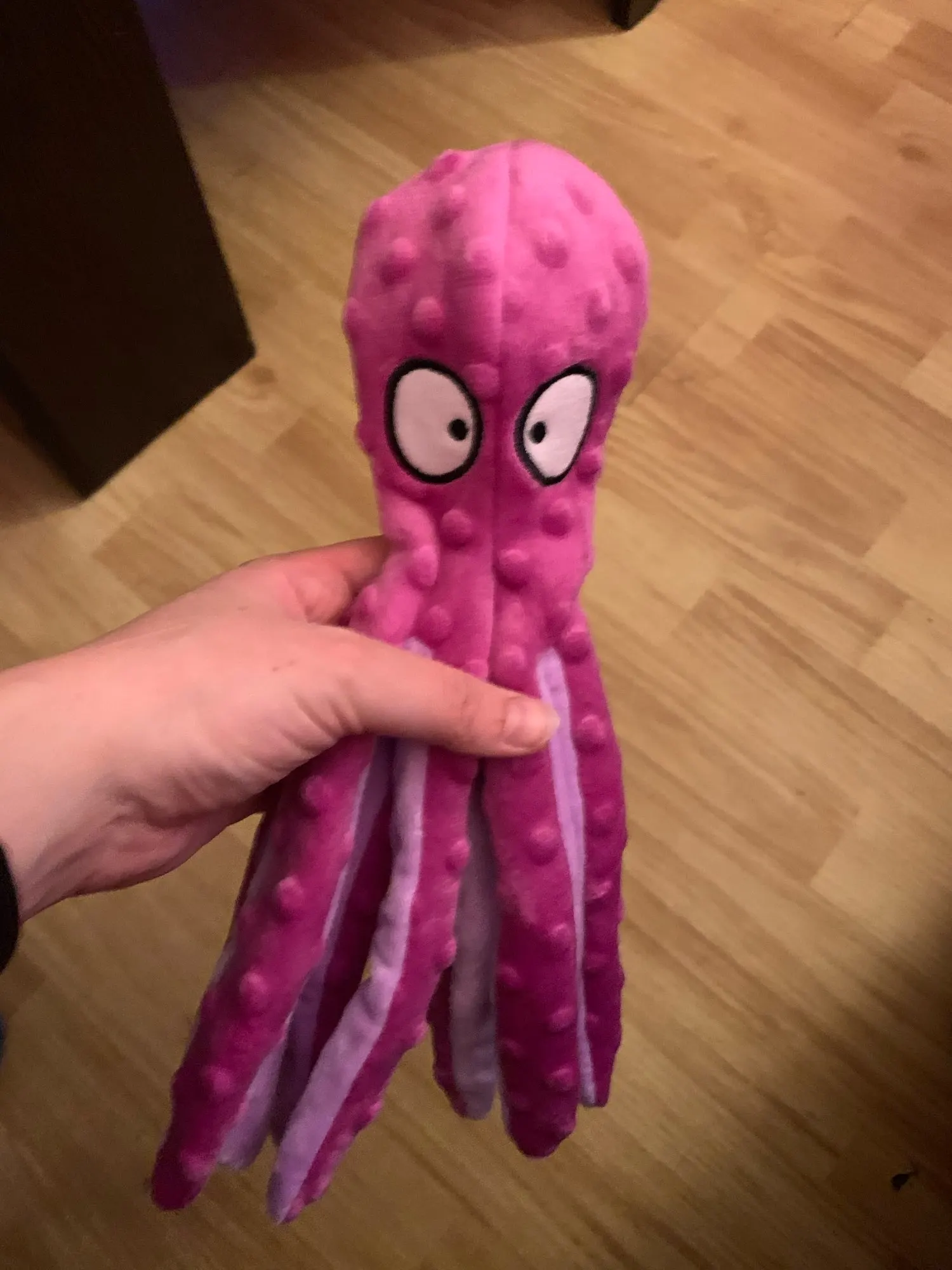 These octopuses are just the greatest toys. They have a biep in the head and the tentacles have that crispy noise. I think a big dog will distroy it pretty fast but for smaller dogs its just a great toy. Delivery was almost 3 weeks to The Netherlands