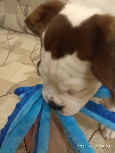 Отличный продукт! Моему щенку очень нравится! Он пищит от головы, а армия издает Хрустящие звуки Приятный материал и выглядит очень мило Рекомендуется!
