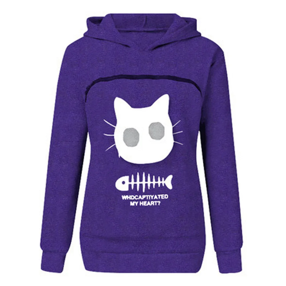 Толстовка с капюшоном для любителей кошек, кенгуру, собаки, лапы, дропшиппинг, пуловеры, прижимная сумка, толстовка с капюшоном с карманами и ушками животных