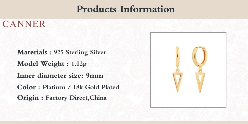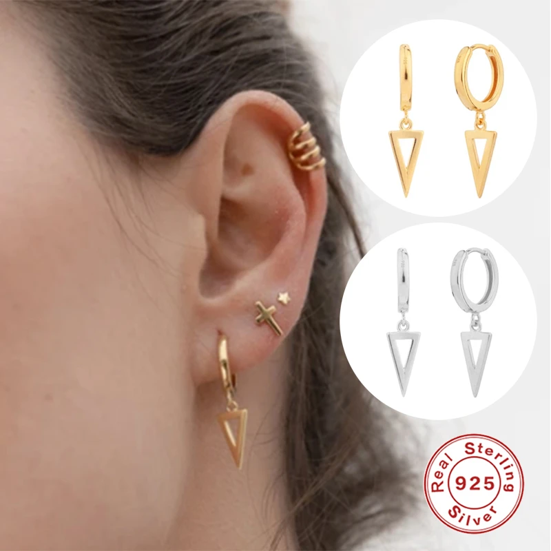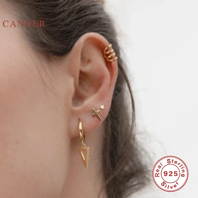 Женские серьги из настоящего серебра 925 пробы CANNER, простые Стильные треугольные серьги-обручи с цирконием и бриллиантами, ювелирные изделия