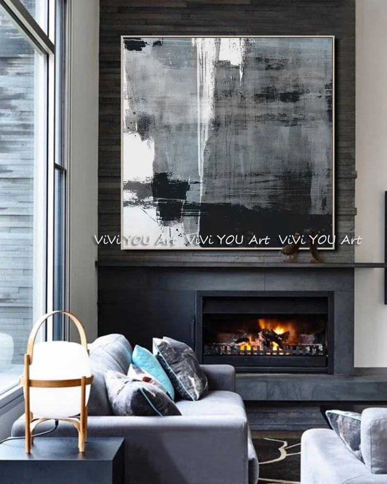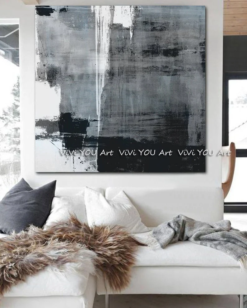 Большая минималистская живопись, холст, черно-белая живопись на хол...