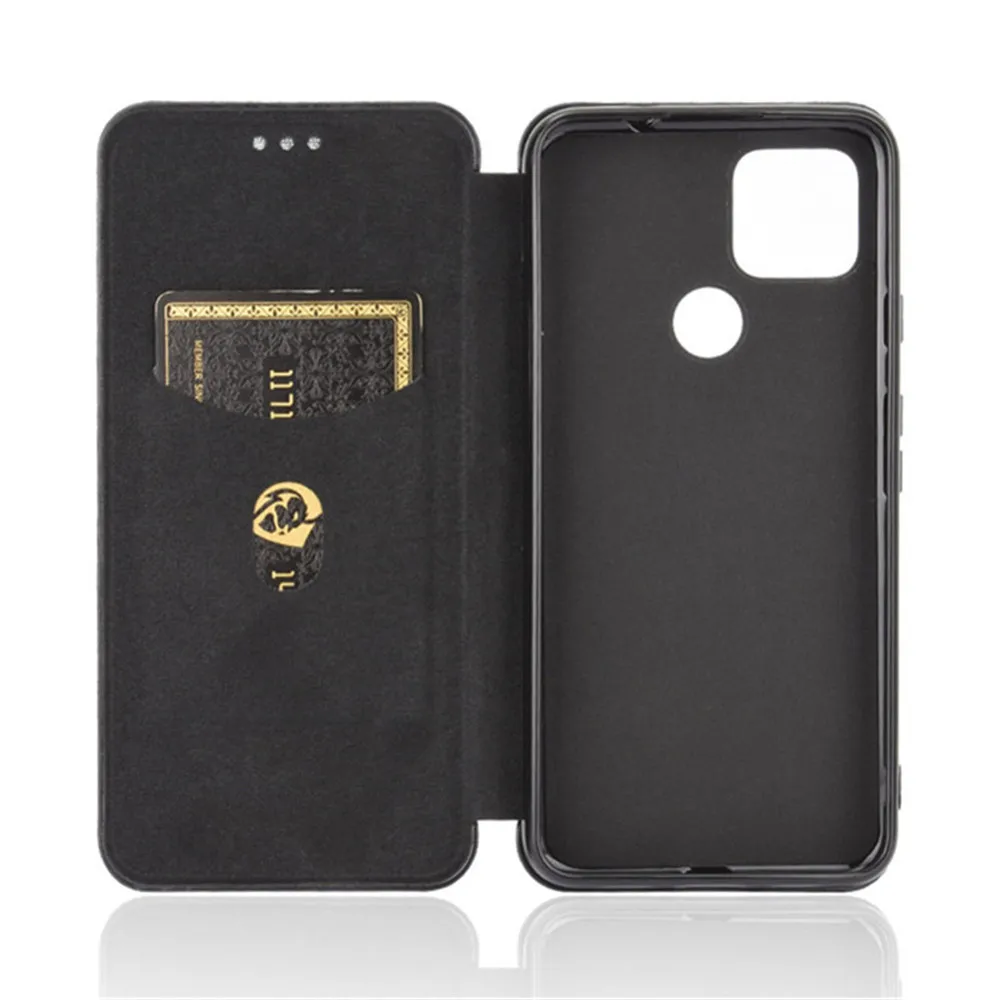 Чехол TCL 20 SE, кожаный чехол-книжка из углеродного волокна для TC...