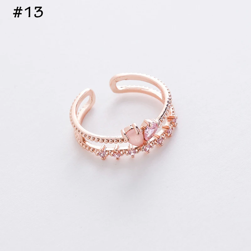 Двухслойное женское кольцо, инкрустированное фианитом, регулируемое на указательный палец