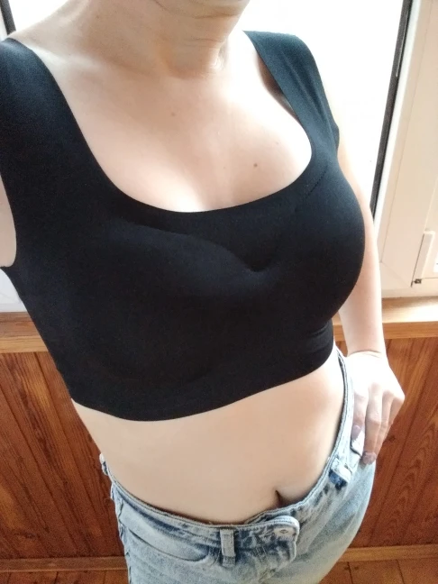 Самый любимый удобный топ В этот топ я влюбилась сразу как его примерила очень комфортный он бесшовный мягкий и приятный. Имеется небольшой пу аш который можно вынуть при необходимости. Он неплохо поддерживает грудь, кстати в нем комфортно спать, его практически не видно по одеждой. По размеру подошел идеально, цветов на автор нескольких. Доставка шустрая хорошая упаковка, я полностью осталась довольна , рекомендую к покупке.