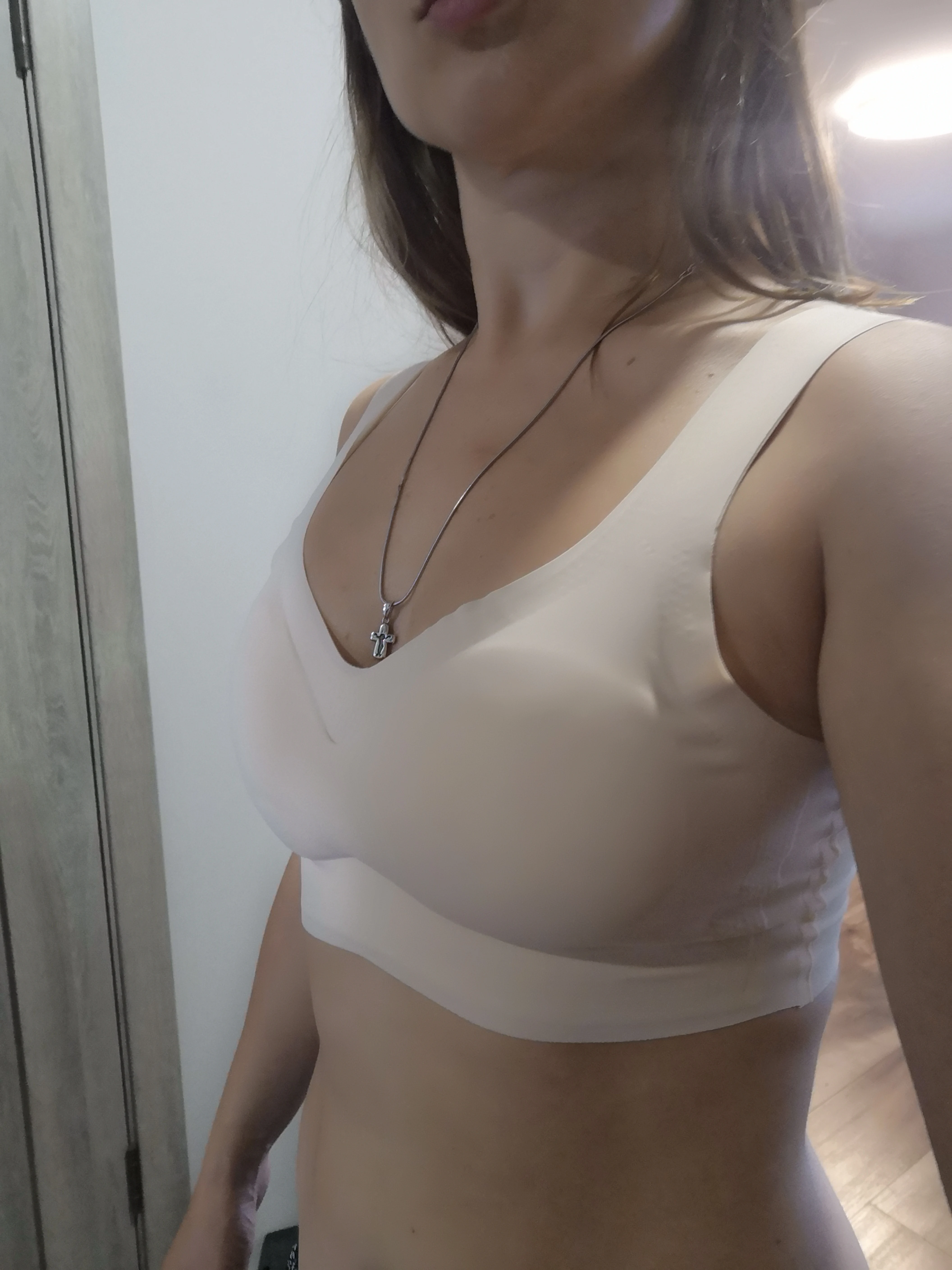 С купоном продавца купила 2 за 239р) Доставили быстро, 12 дней с момента оформления заказа, отслеживание отличное. Очень тонкий приятный материал, швы проклеены ровно, вставки на мой взгляд толстоваты, непривычно, но вроде удобно. Может быть заменю потом вставки или разрежу серединку, эффект пушапа мне в принципе не нужен. Взяла М на стандартный 42р-р, 75А, 52 кг, рост 156. Бежевый показался немного более узким в объеме, но не критично, растянется.