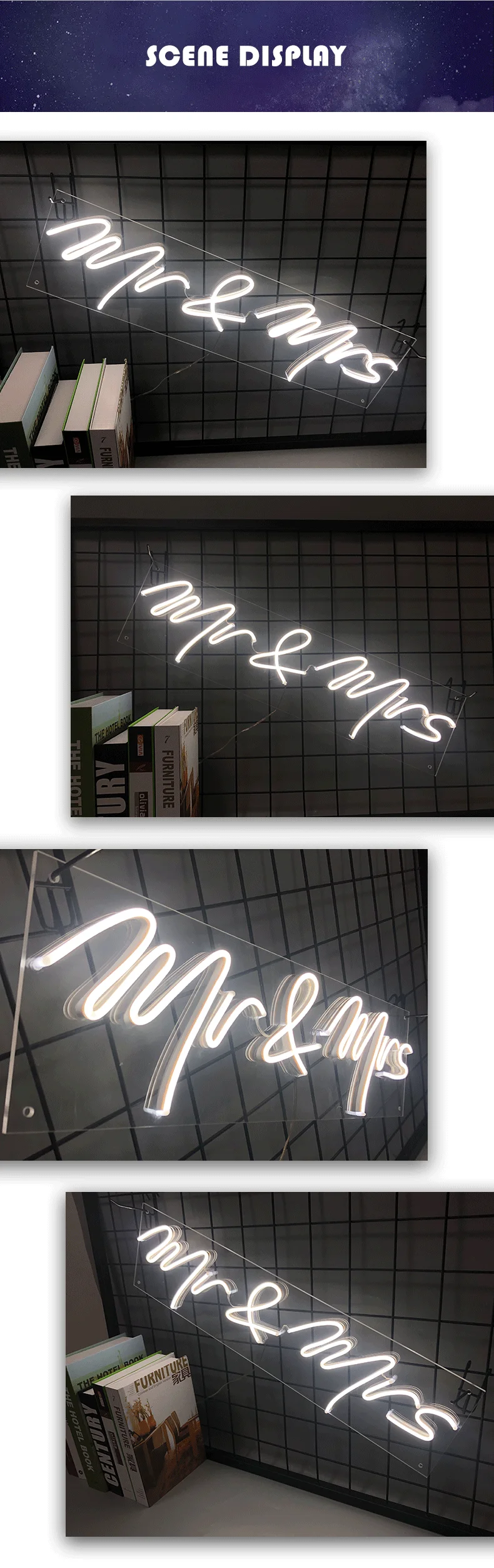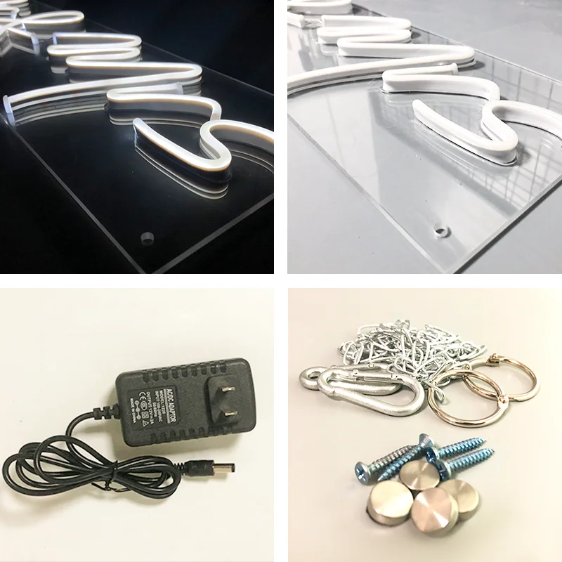 1. Акрил: обладает хорошей прочностью, светильник весом, долговечностью, не легко повредить, прозрачные материалы делают неоновый светильник s более красивым