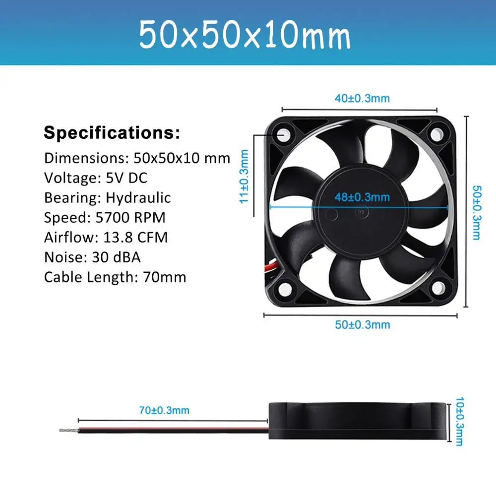 5 шт. 5010 50*10 мм 5 в охлаждающий вентилятор 2-контактный разъем ...