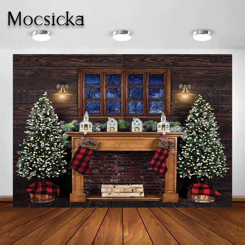 Фотофон Mocsicka Рождественская деревянная стена Рождественская елка камин фон для новорожденных фотосессия Фотостудия