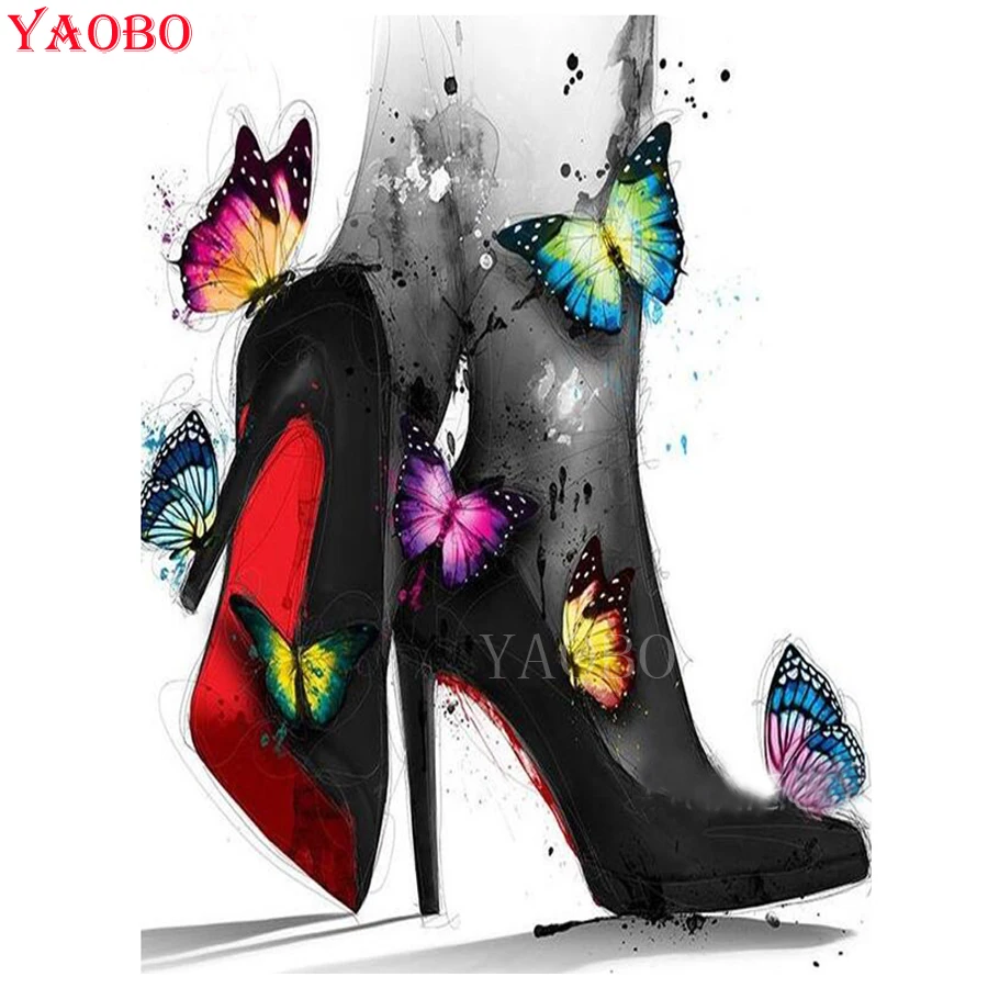 Алмазная картина сделай сам, квадратные туфли на высоком каблуке с изображением бабочек, алмазная вышивка, картины для стразы, набор для мозаики