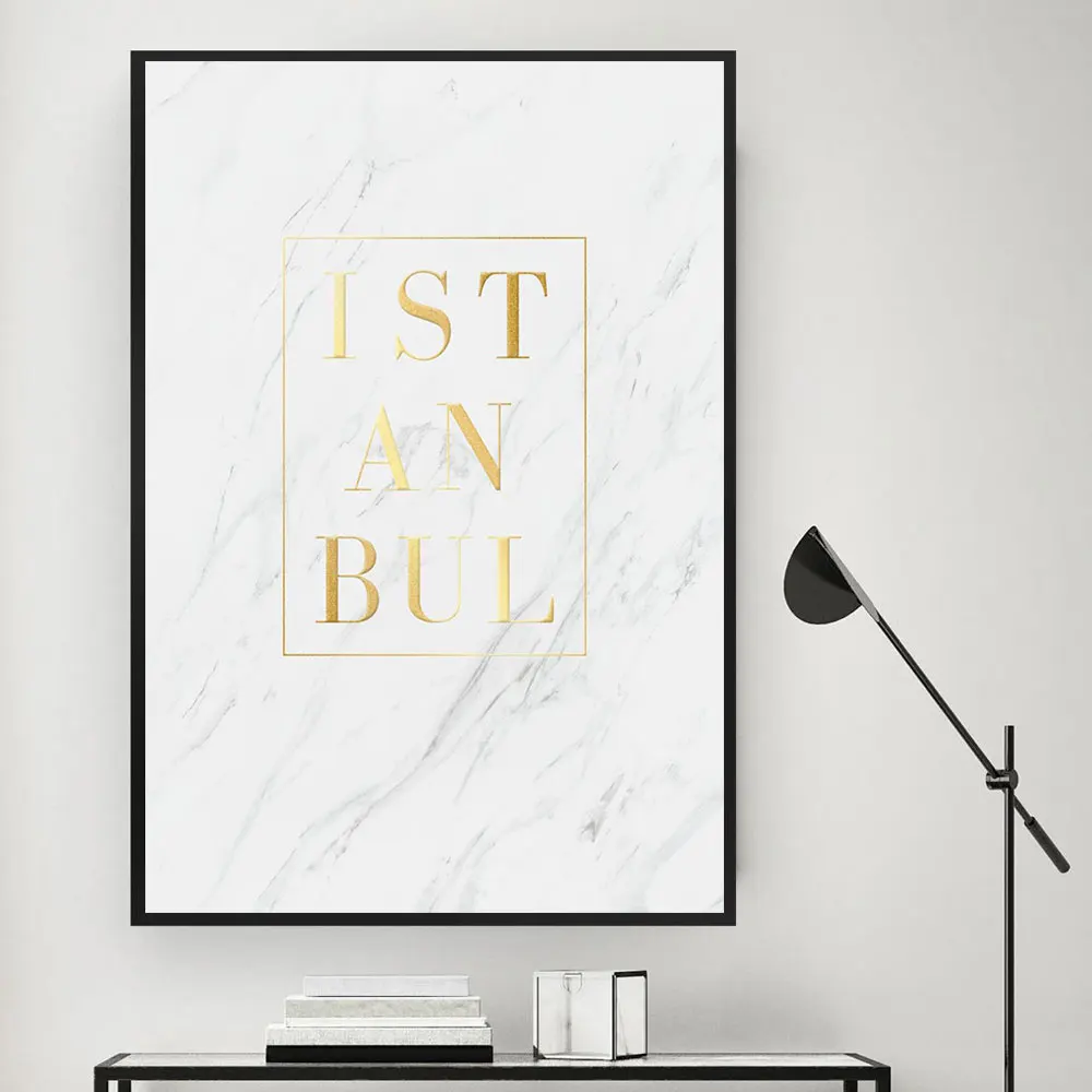 Архитектурная мечеть, Золотая мраморная карта из стамбала, холст, ж...