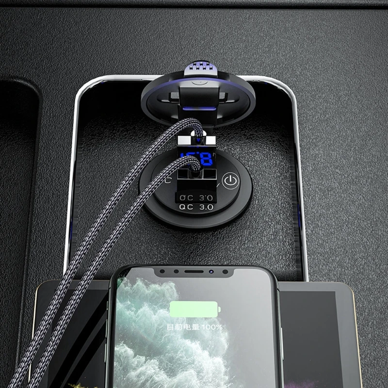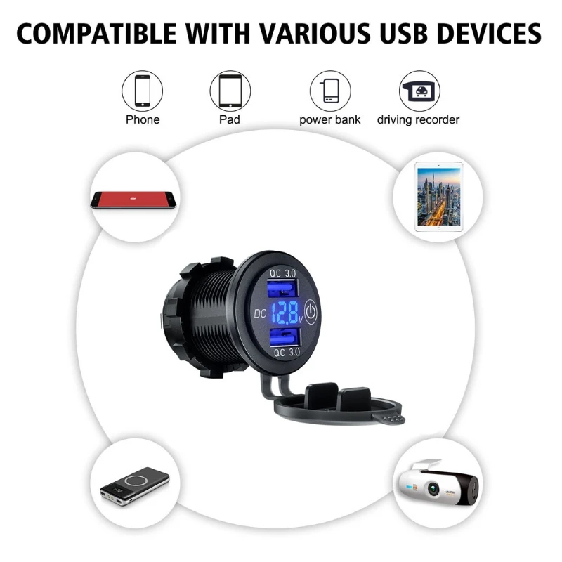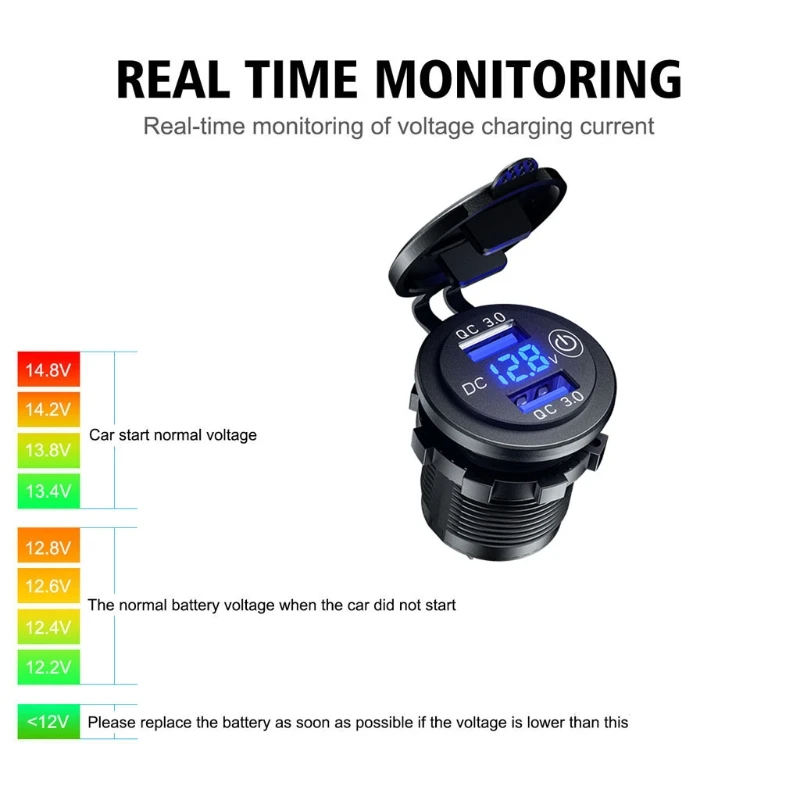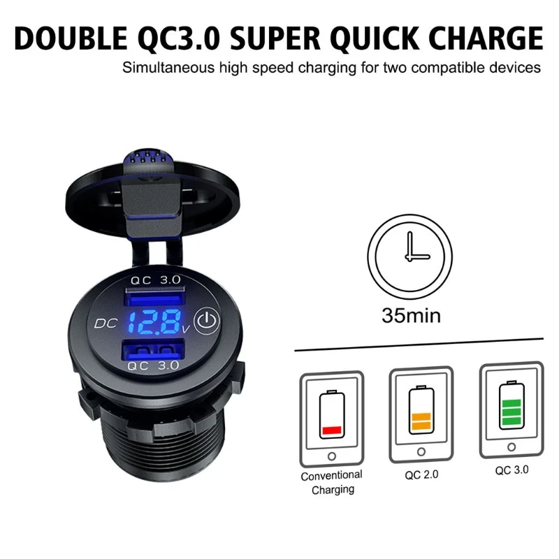 OOTDTYС сенсорным выключателем, простым в использовании и экономичным питанием, изготовленным из передового АБС-материала с герметизацией IP66.Автомобильное зарядное устройство QC 3,0 спроектировано с двумя usb-портами быстрой зарядки 3A 3,0, оно заряжает два совместимых устройства до 4 раз быстрее, чем традиционное зарядное устройство. Также подходит для быстрой зарядки 2,0 и 1,0.Поддержка установки в 12V-24V мотоцикл, автомобиль, лодка, мотор, ездовая косилка, внедорожник, ATV, трактор или грузовик.Светодиодный дисплей напряжения, может контролировать состояние напряжения автомобильного аккумулятора в режиме реального времени, чтобы предотвратить персональную безопасность и повреждение свойства от сбоя батареи.Автомобильное зарядное устройство usb встроено в сенсорный переключатель вкл./выкл. Для управления питанием, который может экономить энергию и продлить срок службы продукта и устройств. Он экономит электричество и не потребляет энергию при выключении.Характеристики:Материал изделия: АБС-пластикЦвет изделия: черныйСветодиодный вольтметр Цвет дисплея: синийВходное напряжение: 12-24 В постоянного токаВыход USB 1: 5 В/3 А; 9 В/2 А; 12 В/1,5 АВыход USB 2: 5 В/3 А; 9 В/2 А; 12 В/1,5 АРазмер: 50x36.8x28.6 ммПримечание:1. Перевод ед. измерения: 1 см = 10 мм = 0,39 дюймов2. Допускается погрешность в 0-1 см из-за ручного измерения. Пожалуйста, убедитесь, что вы не возражаете, прежде чем сделать ставку.3. Из-за разницы между различными мониторами изображение может не отражать фактический цвет изделия. Спасибо!Посылка включает в себя:1 X QC 3,0 Автомобильное двойное зарядное устройство USB с сенсорным переключателем2 X терминал