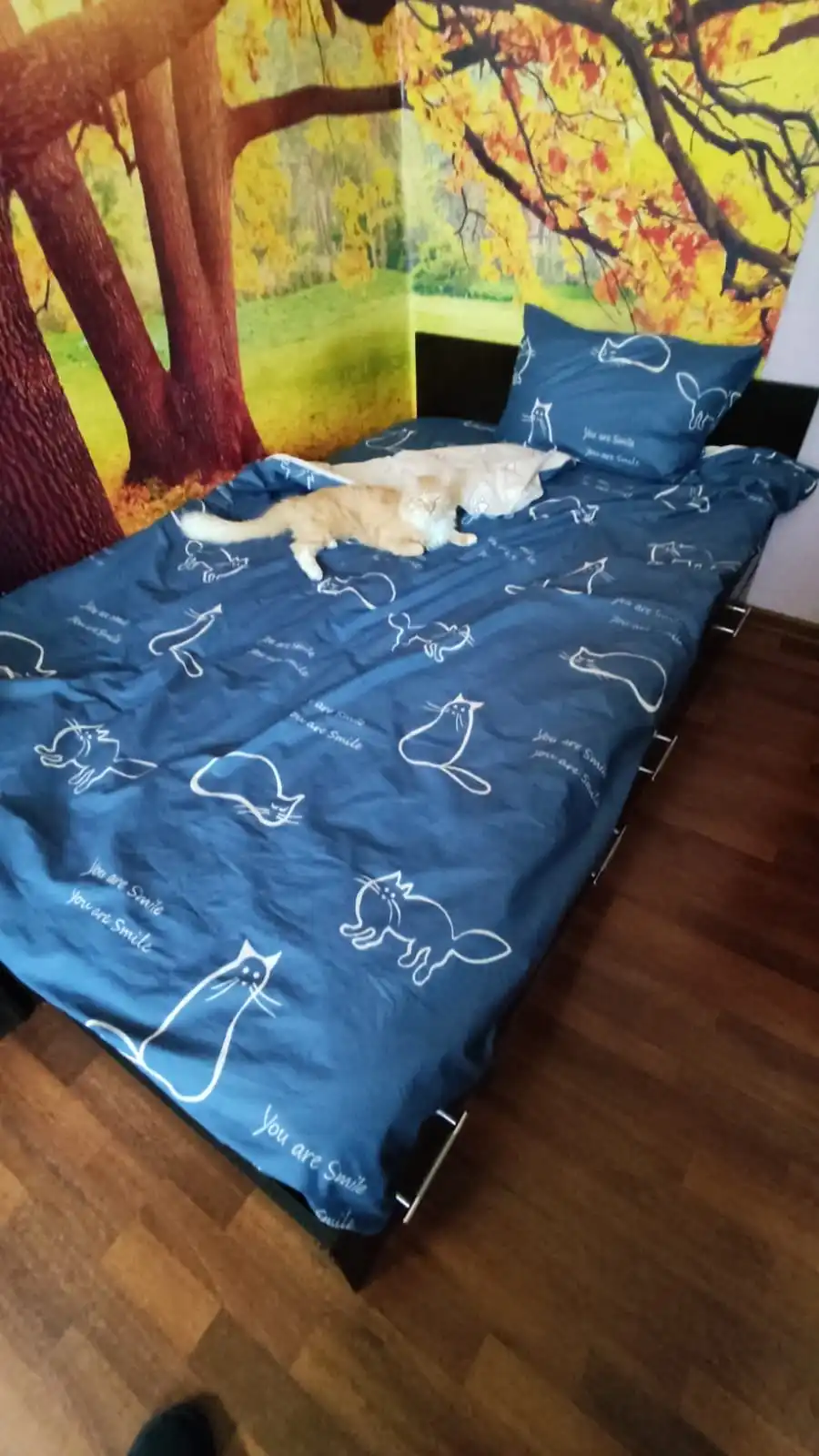 Не первый раз заказываю этот вариант постельного белья (котики). После года пользования цвета почти не полиняли, швы не разошлись. Ткань приятная на ощупь, не синтетика. Доставка- два дня после заказа.