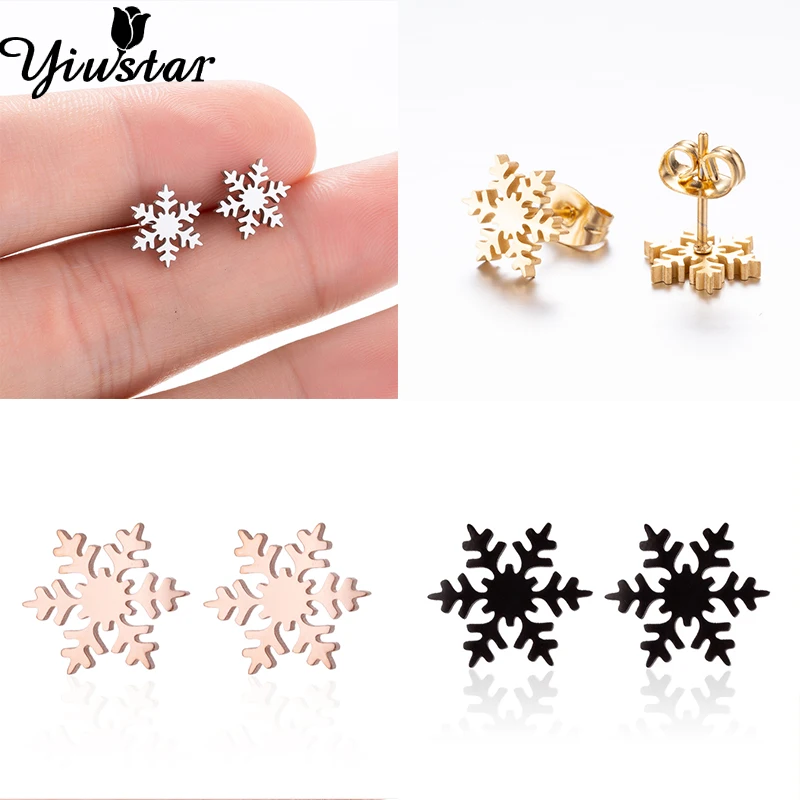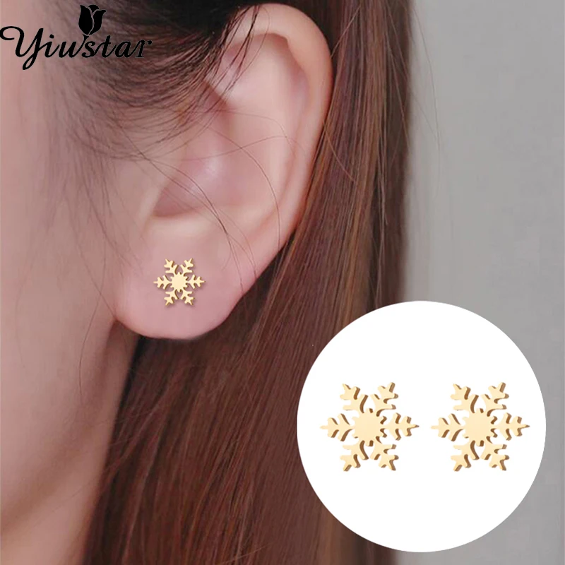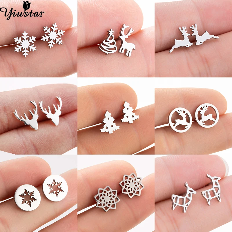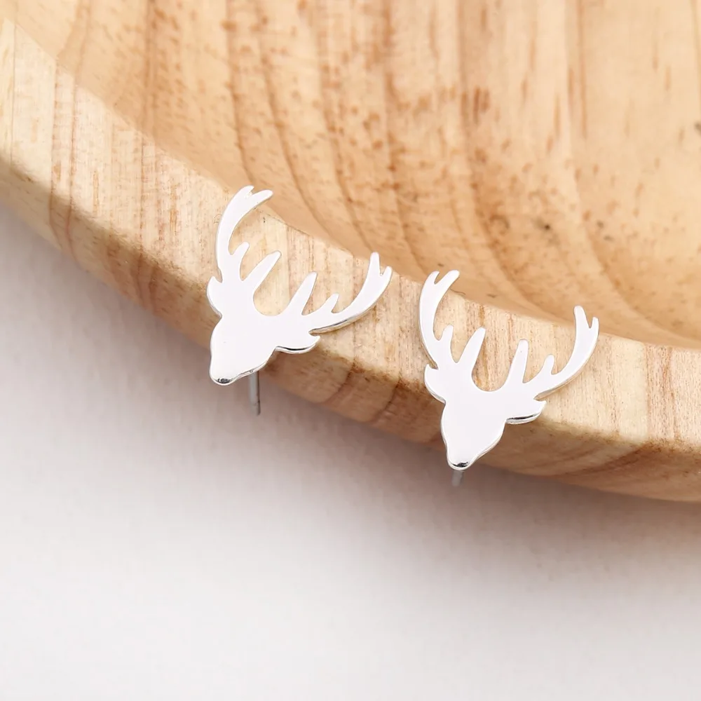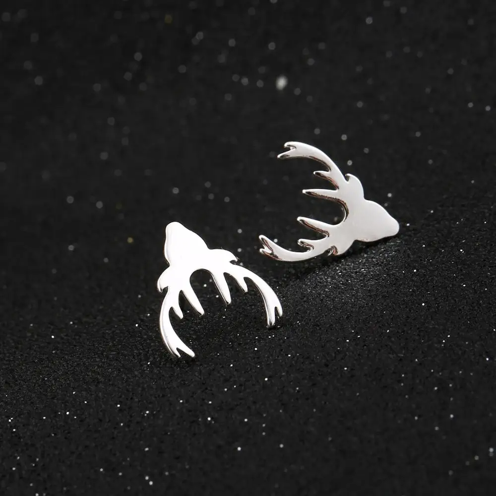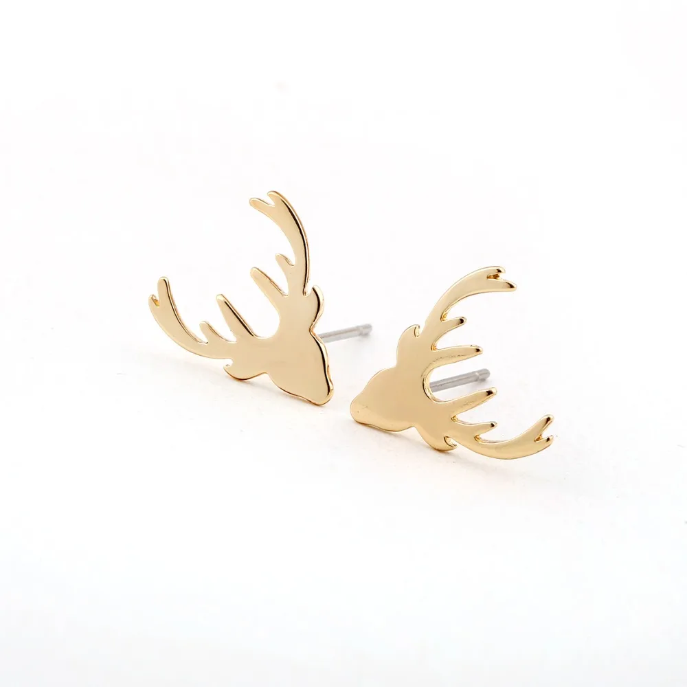 Женские серьги-гвоздики, в виде рогов оленя, снежинки, маленькие серьги-гвоздики