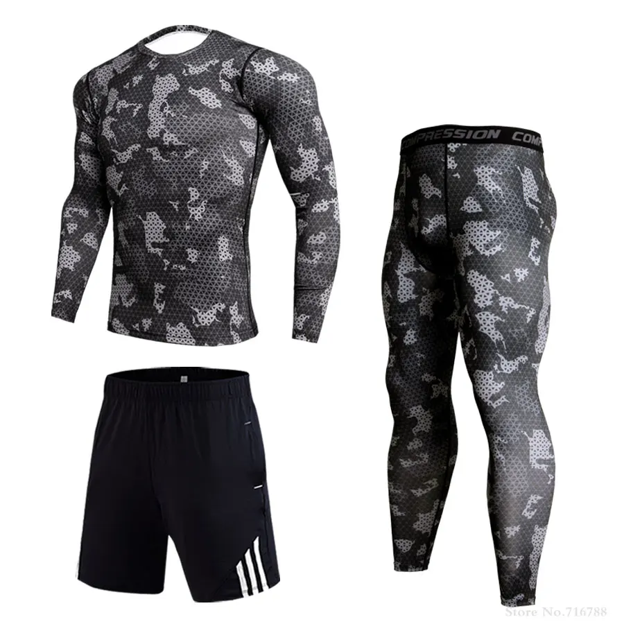 Мужские Компрессионные спортивные костюмы 3 шт.компл., тренировочна...