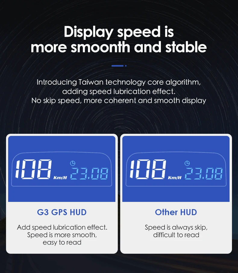 Автоматический датчик яркости-Светодиодный дисплей G3 HD автоматически регулирует соответствующую яркость в соответствии с светильник. Нет привидения и двойного изображения, никогда не нужно наносить пленку на лобовое стекло